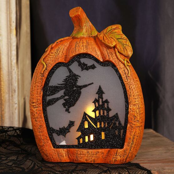 A charming addition to Halloween décor, this witch design magnesia pumpkin with led flame (try me button) brings a touch of seasonal atmosphere. With its unique character and refined detailing, it serves as an appealing seasonal highlight. A fitting choice for those wishing to enrich their Halloween décor theme.