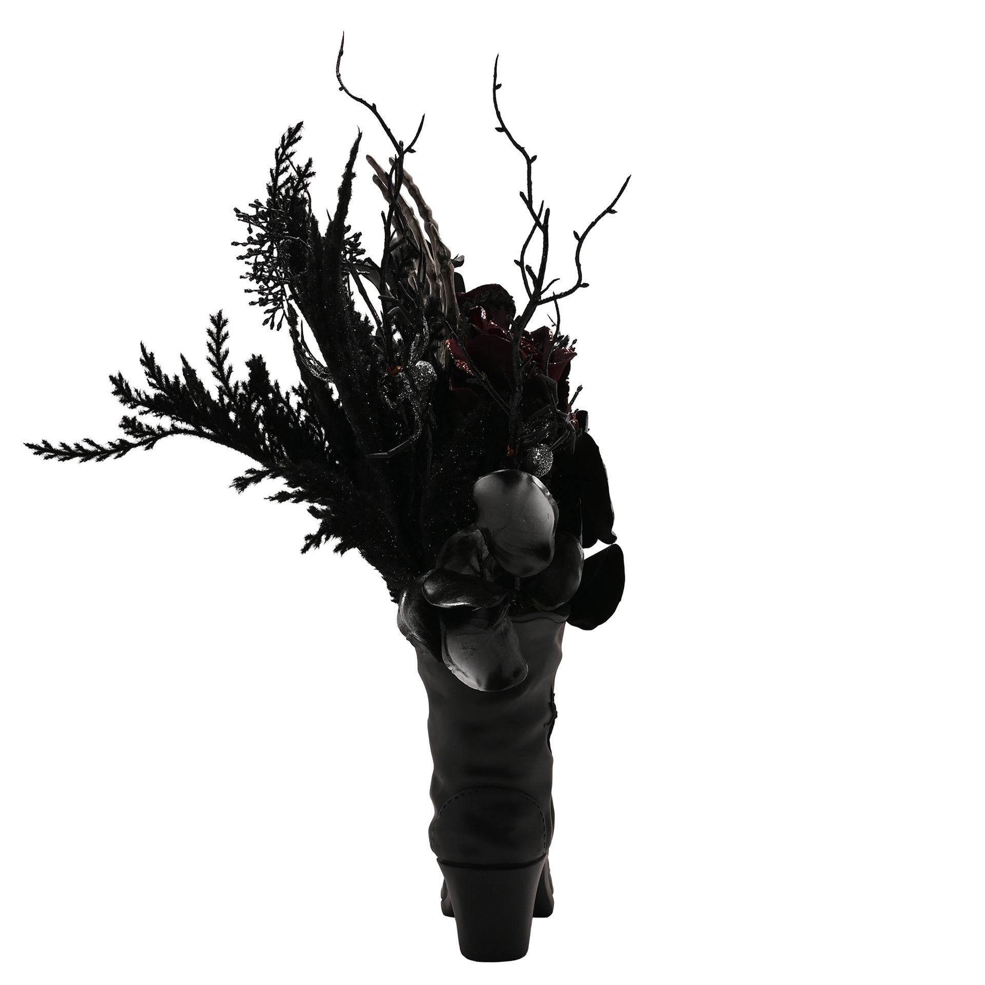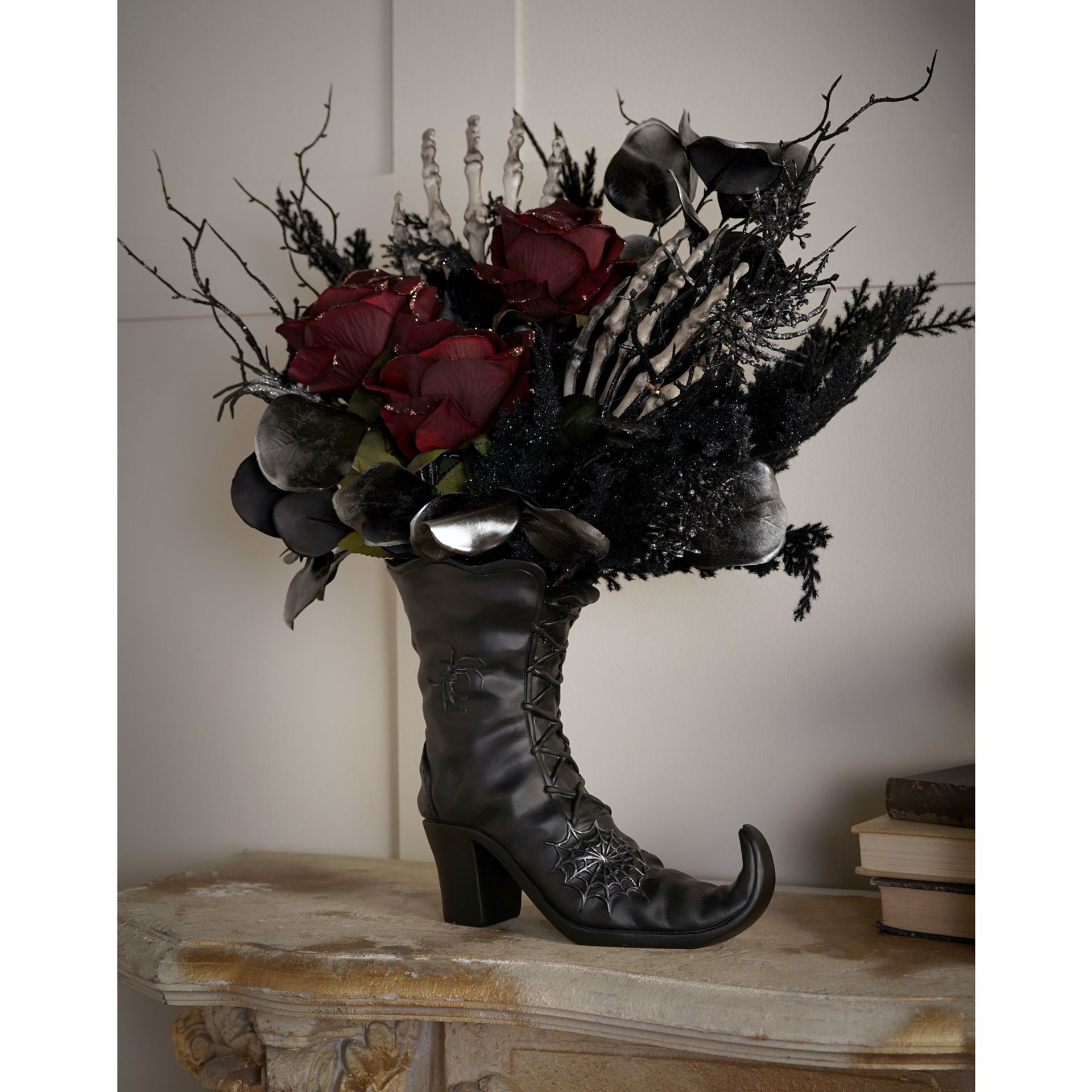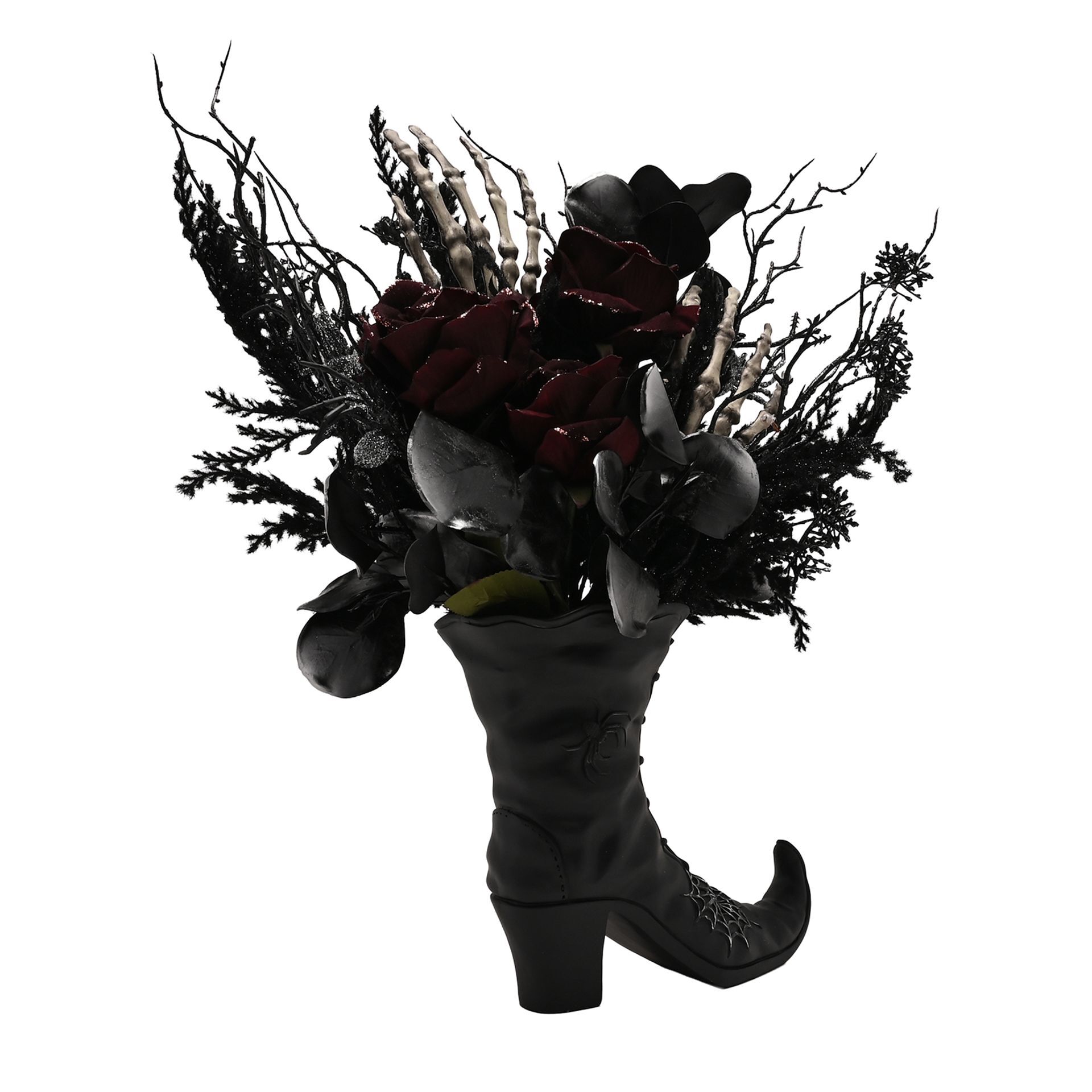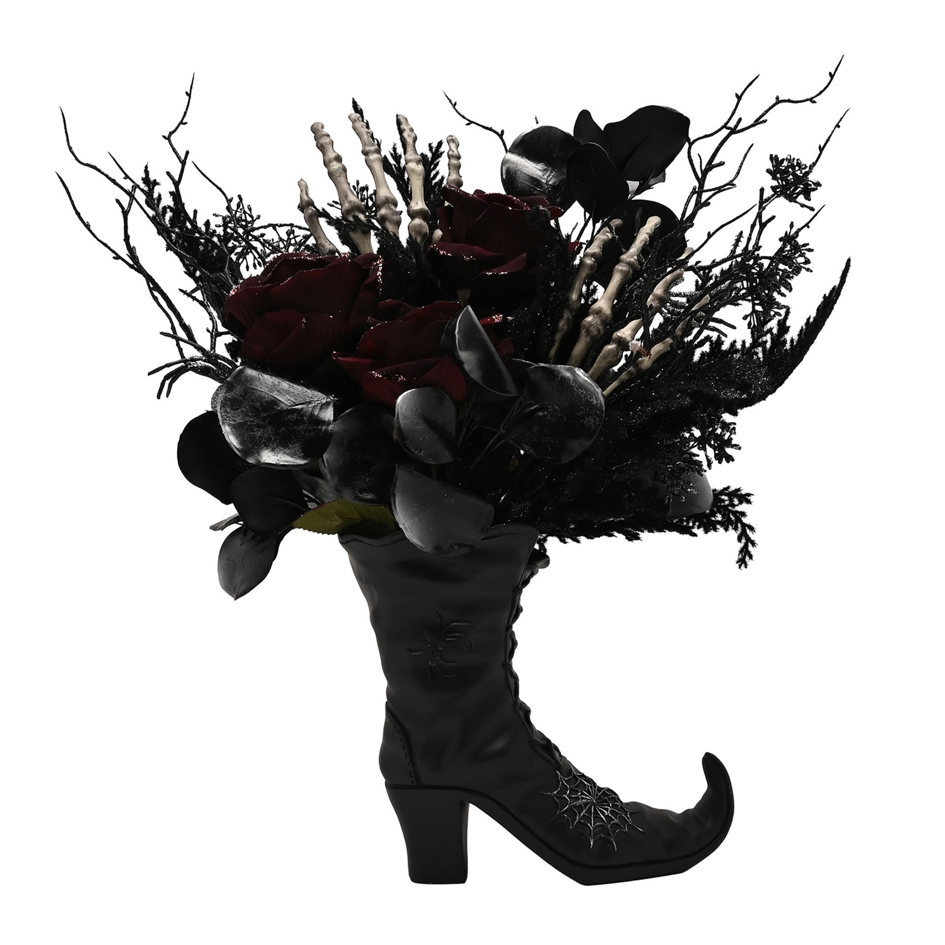 18" Rose Halloween Floral Arrangement With Skeleton Hand & Witch's Boot