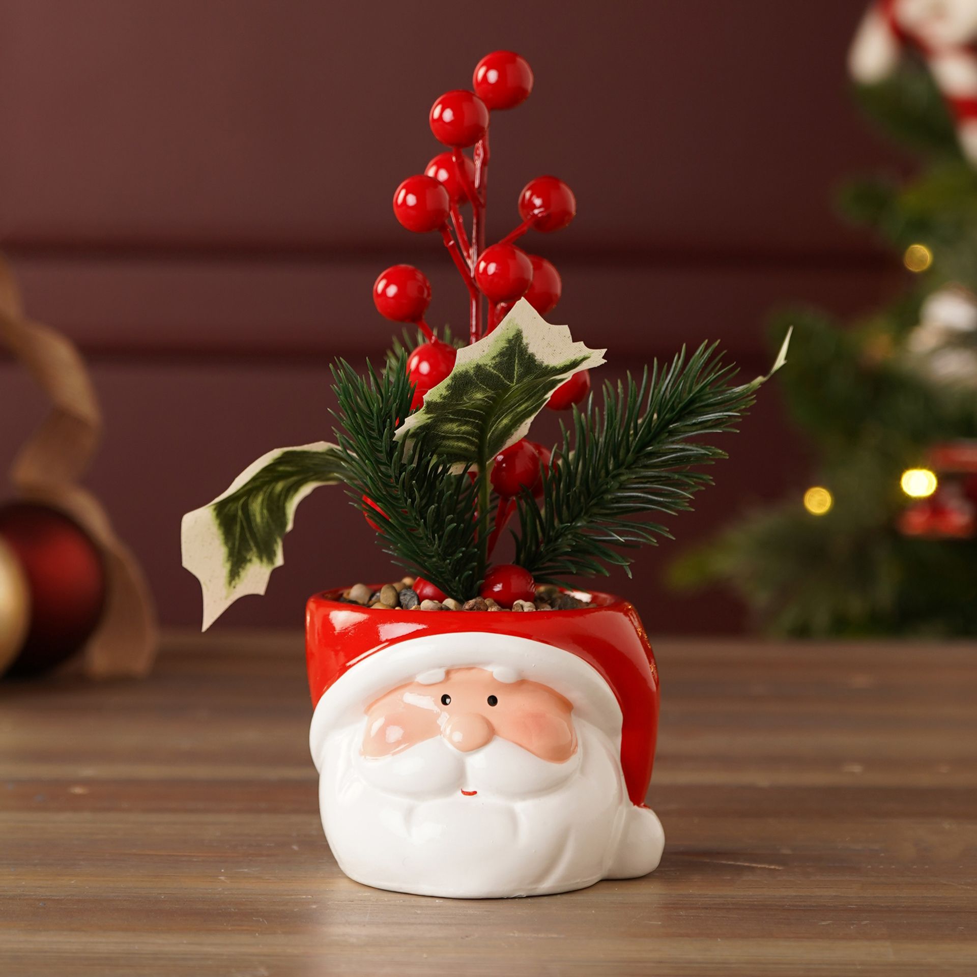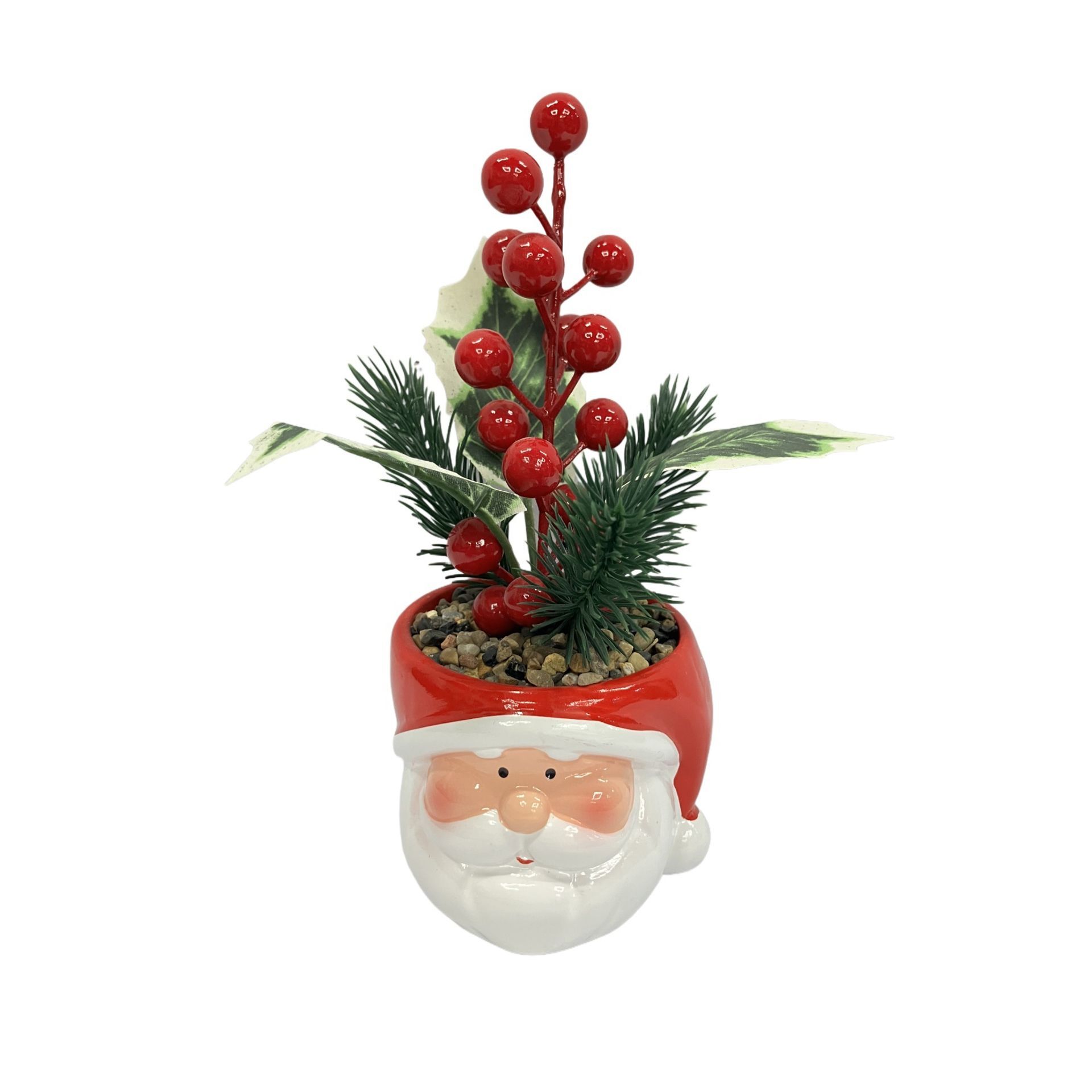 Christmas Ceramic Santa Decoration With Berry Faux Plant