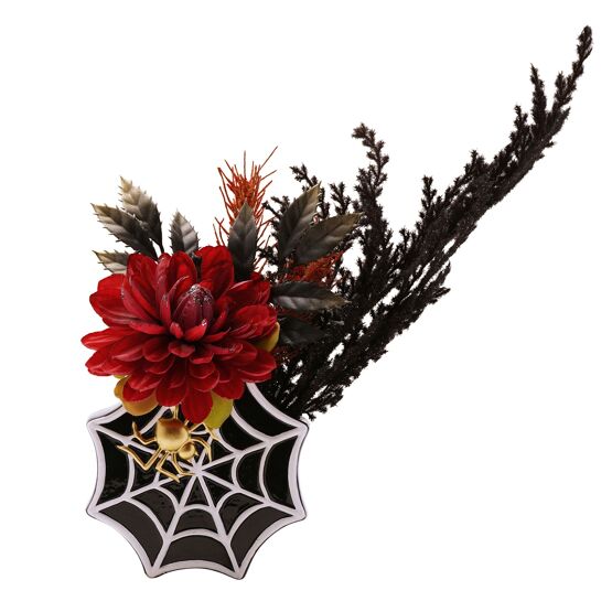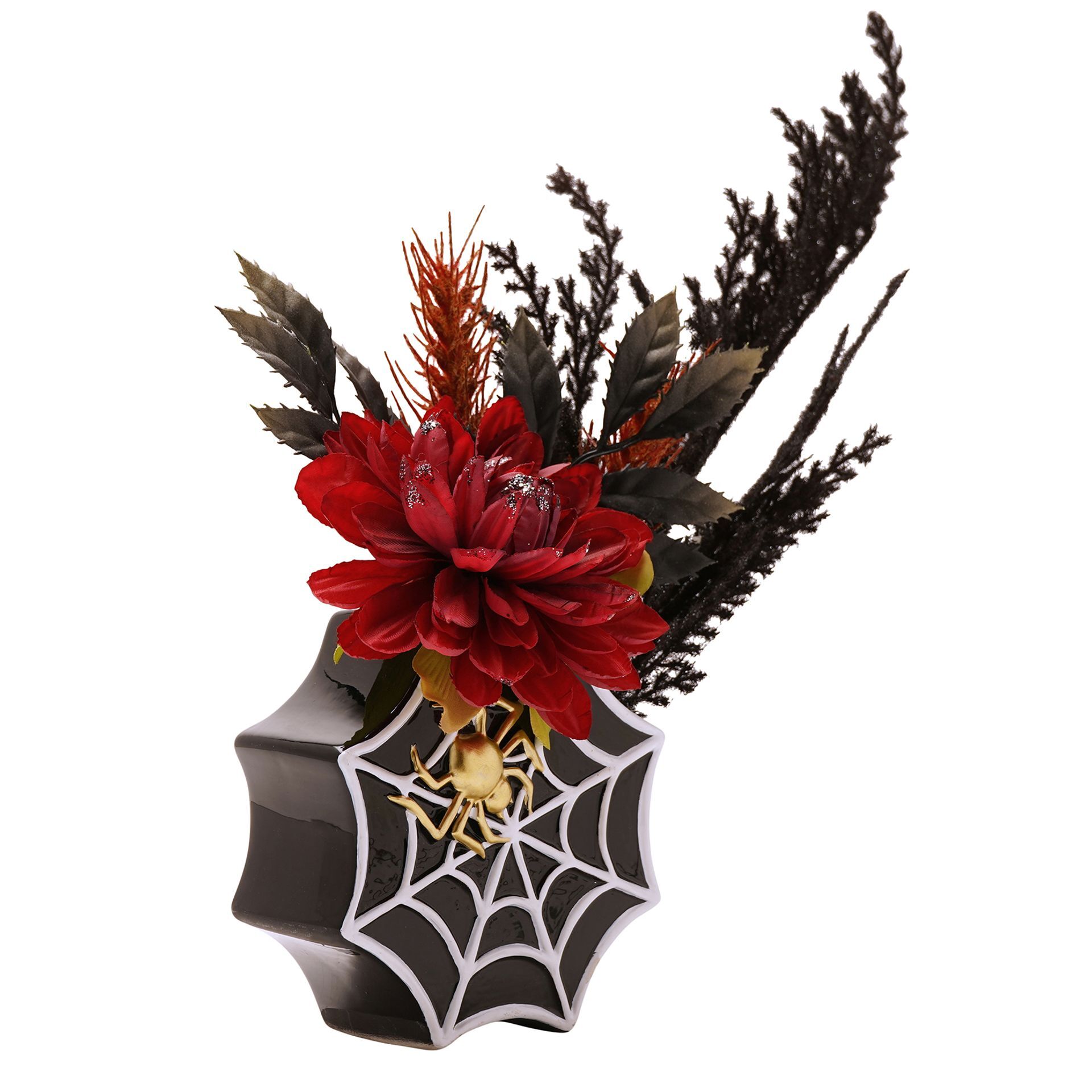 Introducing the Hocus Pocus Web Vase with Dahlia Pampasgrass, for alternative Halloween displays.