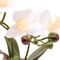 The white textured pot houses an artificial white orchid plant. It is completed by artificial pebbles.