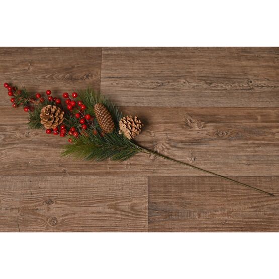 Natural Stem with Red Berries, Pine Cones and Foliage 75cm
