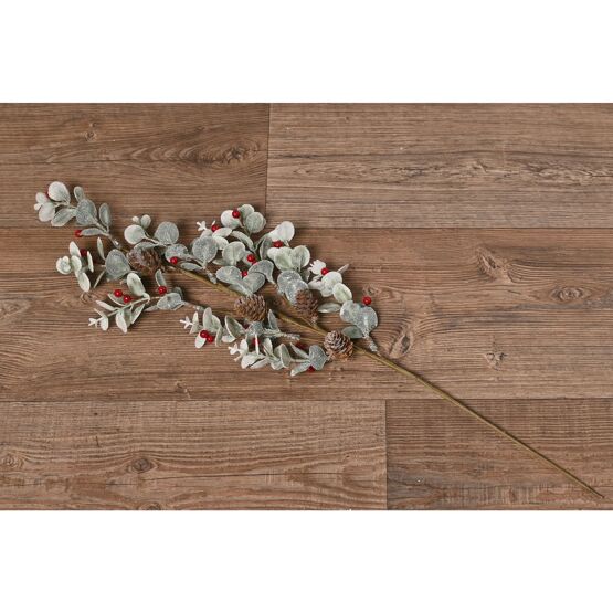 Snowy Eucalyptus Stem with Red Berries - 65cm
