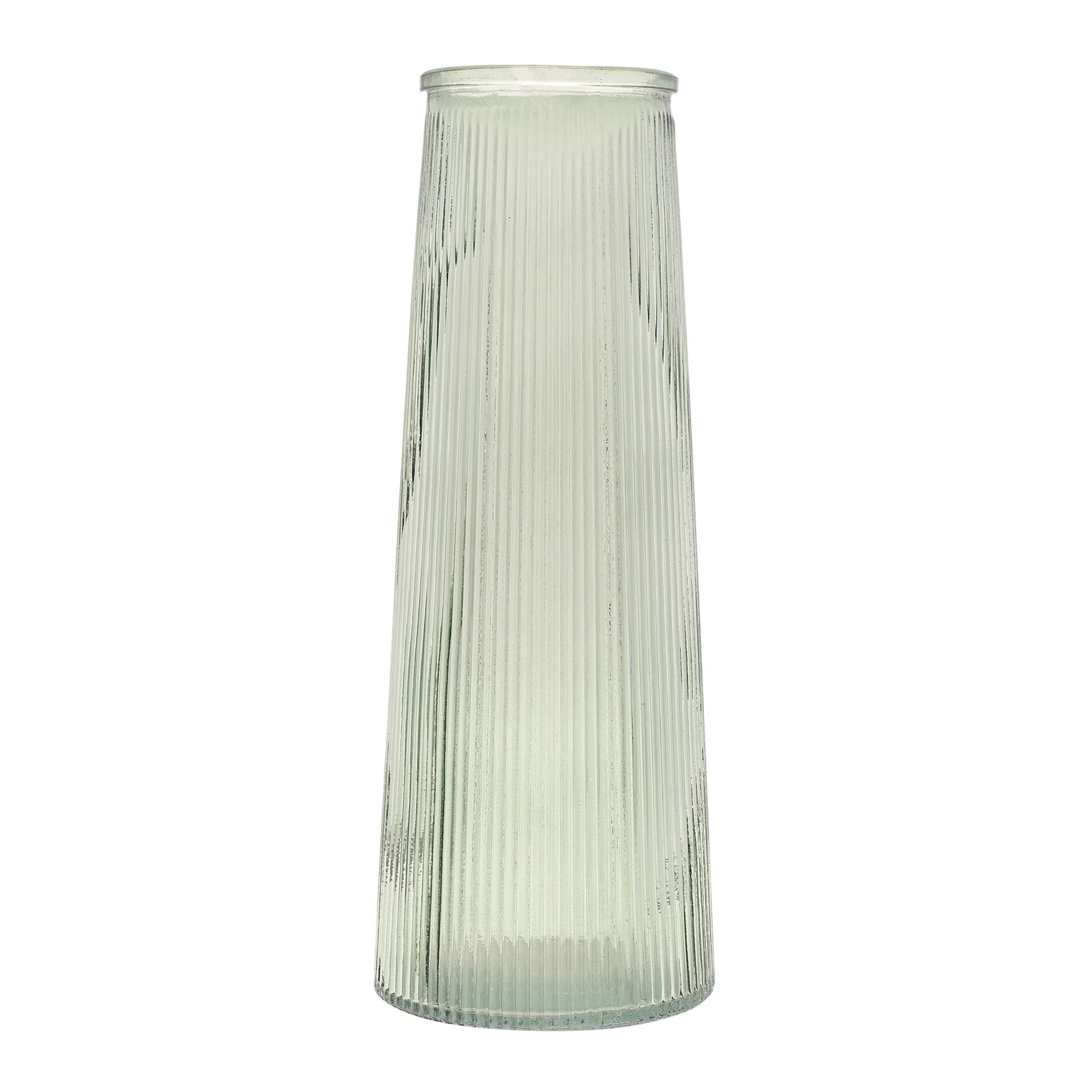 With its tall cylindrical shape and subtle vertical ribbed detailing, it catches the light beautifully and adds a refined touch to shelves, tables, or mantels. Perfect for displaying fresh or artificial flowers, the timeless design suits both modern and traditional décor.