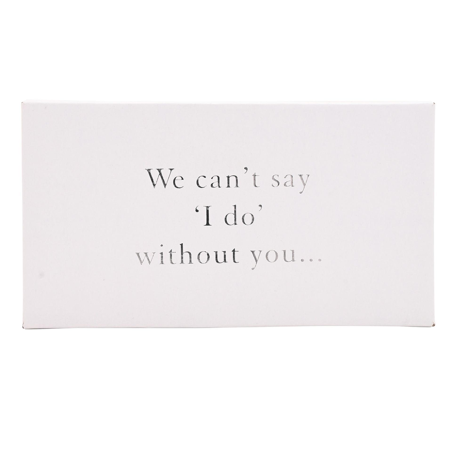 - Luxury lidded gift box with silver foil embossed WE CAN'T SAY 'I DO' WITHOUT YOU...