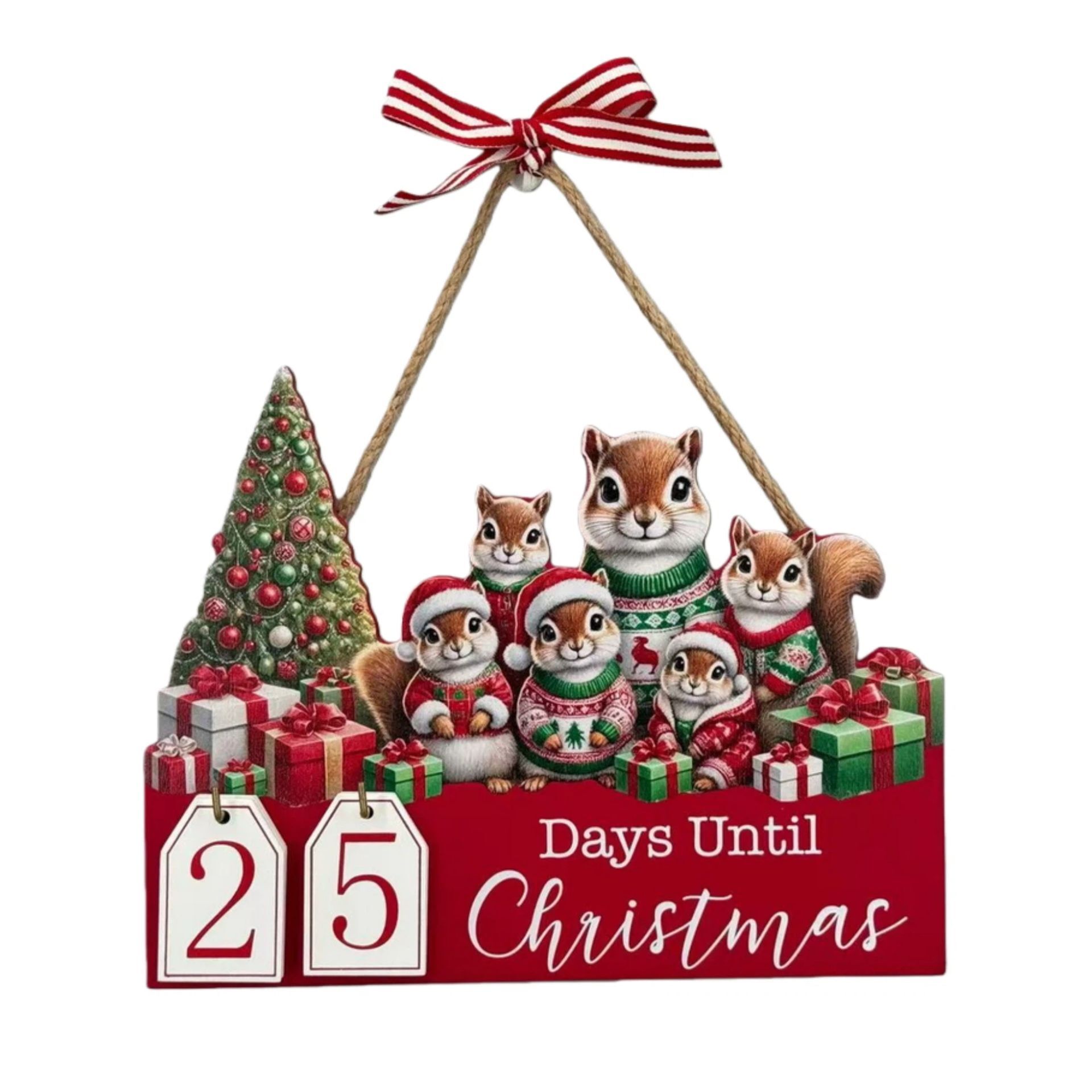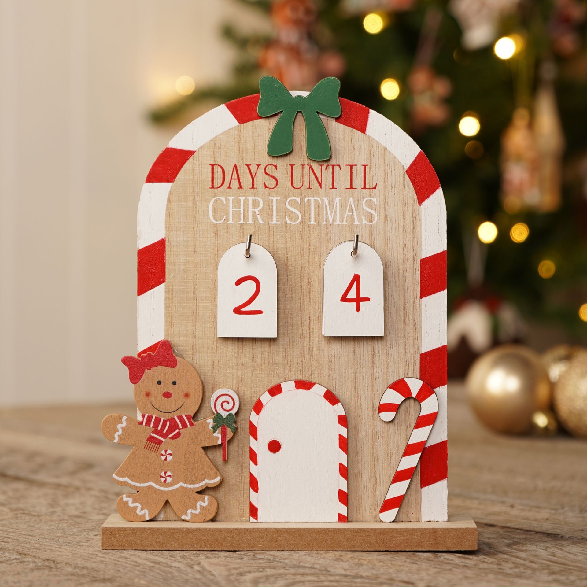 The blue wooden plaque showcases gold decoration and matching ‘Days Until Christmas’ title, complete with round chalkboard in which to countdown the days. It is designed to be hung on the wall using the attached gold ribbon hanger.