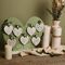 The green wooden heart frame showcases a rustic finish, faux leaf decoration and a white ‘Love Story Wedding Collection’ title. It features seven matching hooks, on which to hang each of the individual hearts available within the range.