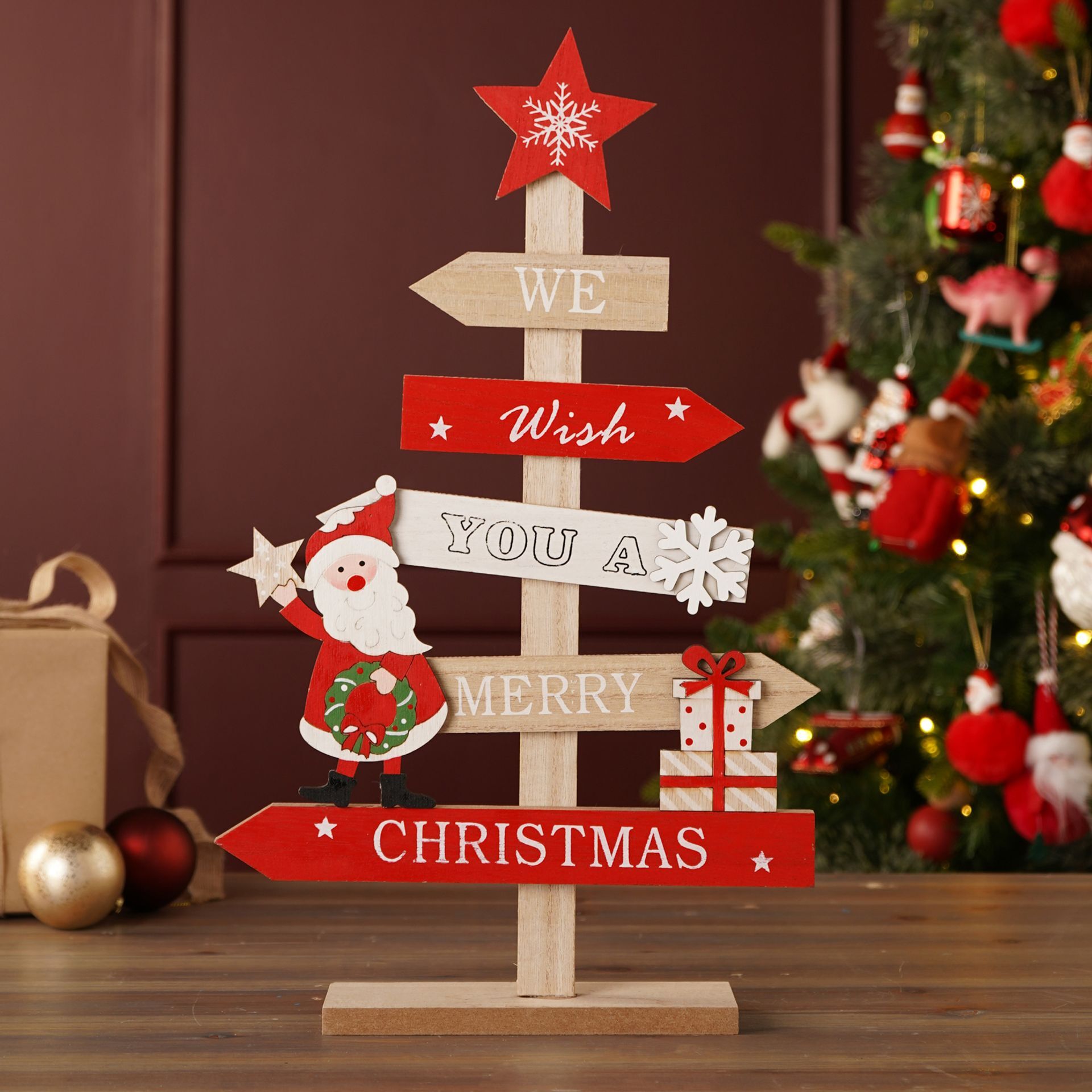 In a rich maroon hue, the plaque features the joyful proclamation, 'it's beginning to look a lot like CHRISTMAS,' with the 'A' in 'Christmas' ingeniously designed as a green Christmas tree.