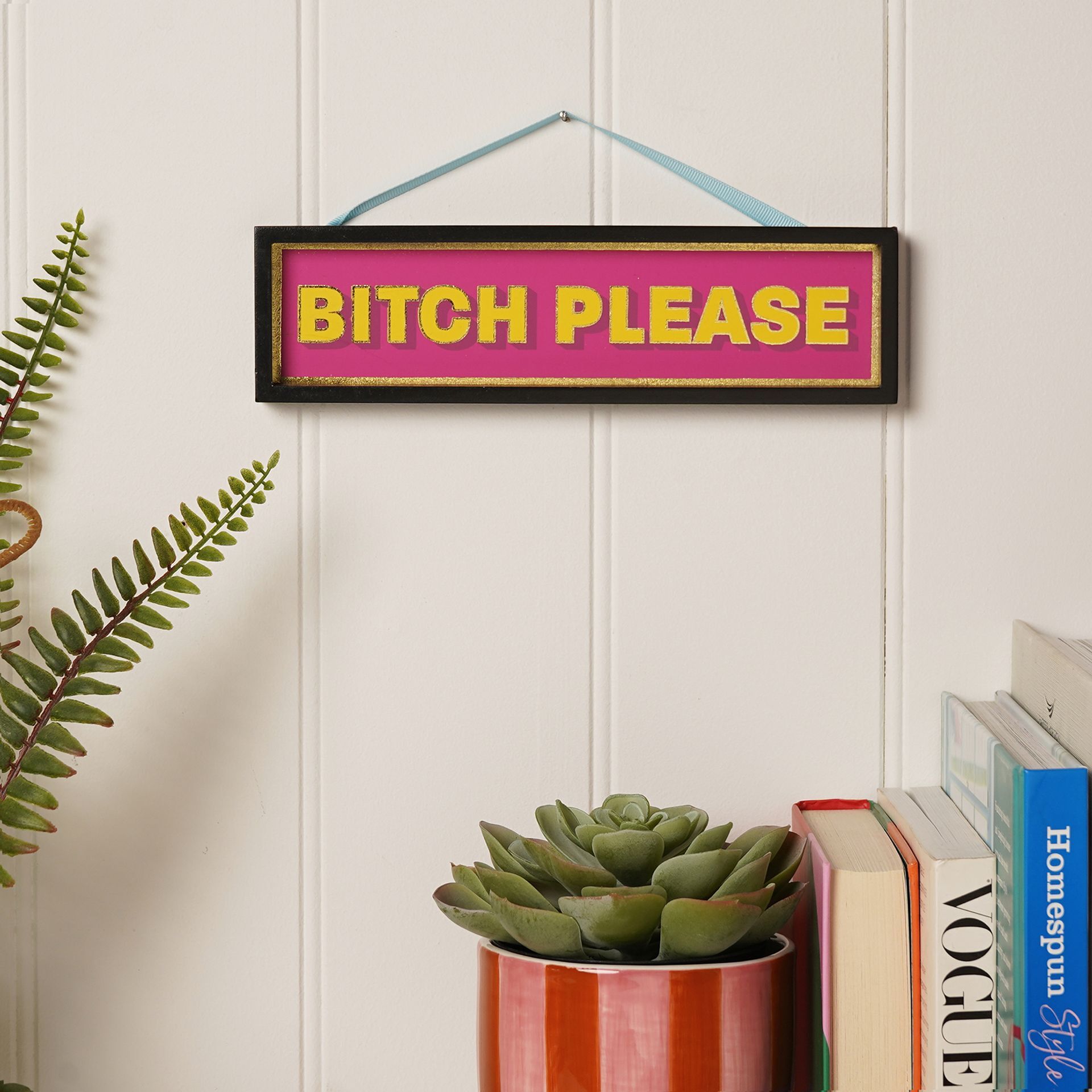 Make a statement with the Signography Hanging Plaque collection – bold wooden signs with vibrant colours and cheeky slogans designed to bring humour and attitude to any space.