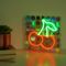 The Signography Neon Collection Wall or Mantel Signs bring a bold, modern twist to home décor with vibrant neon-style lettering set against a shimmering background.