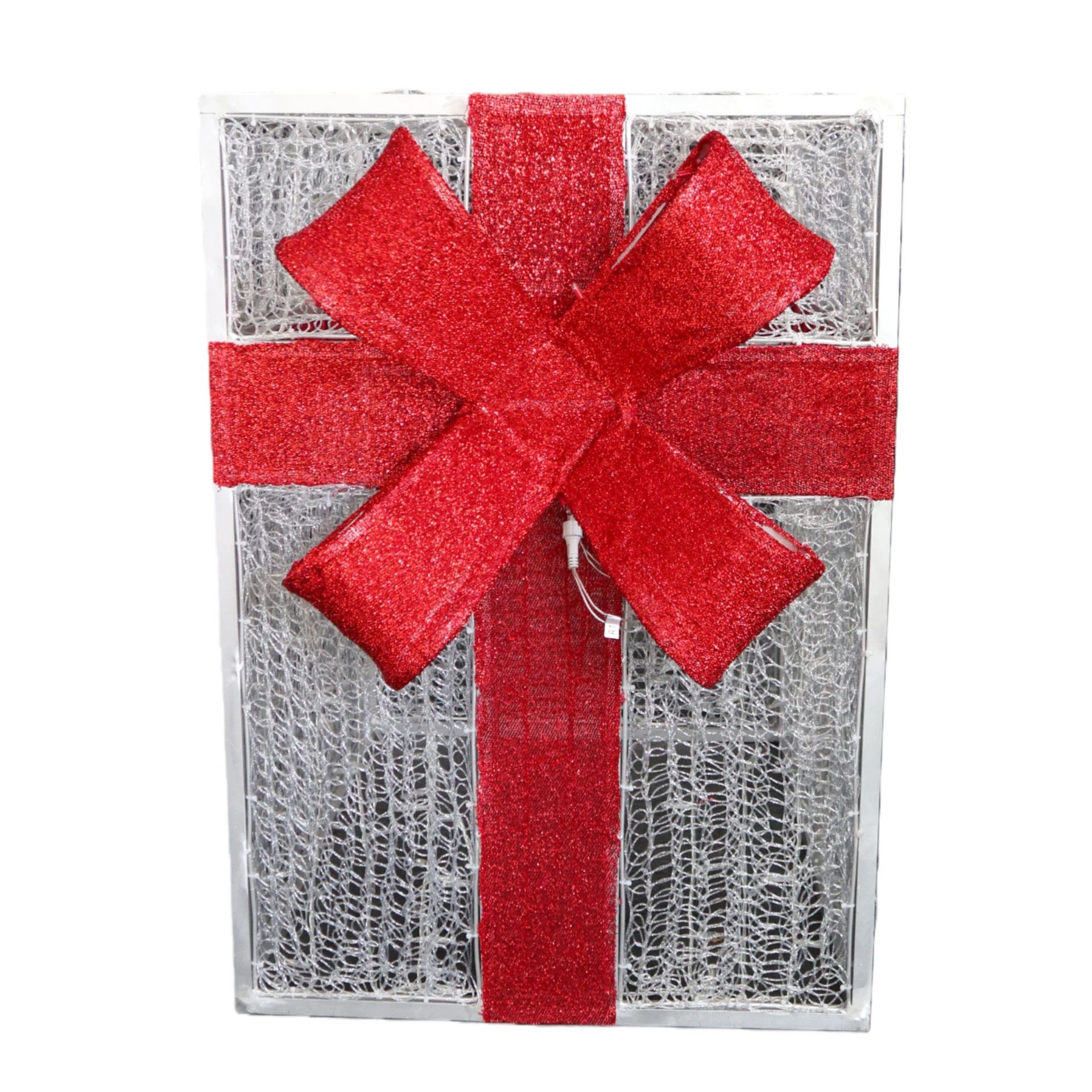 3D Silver & Red Gift Box With Bow Size:70 x 90 x 100cm With 680 LED Lights