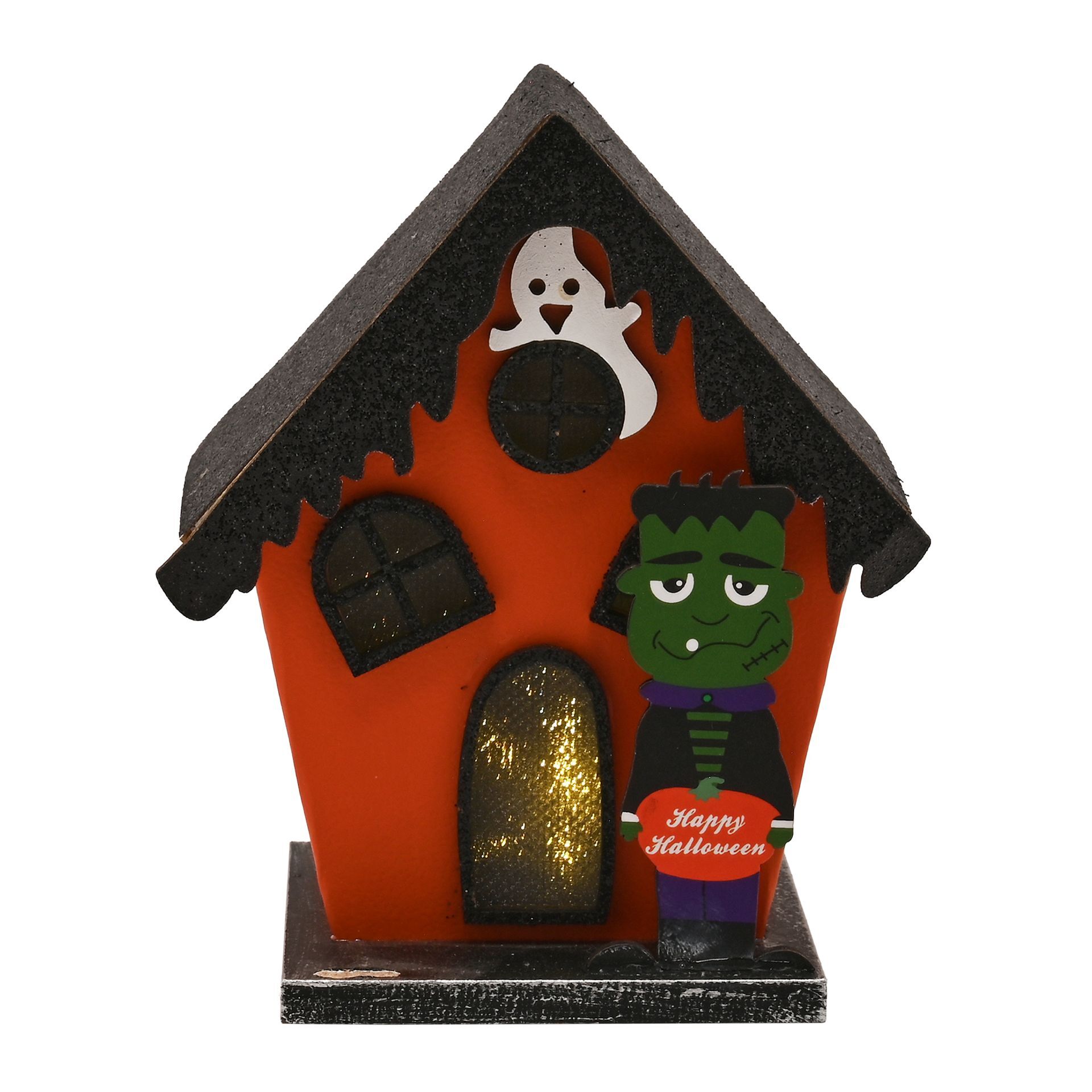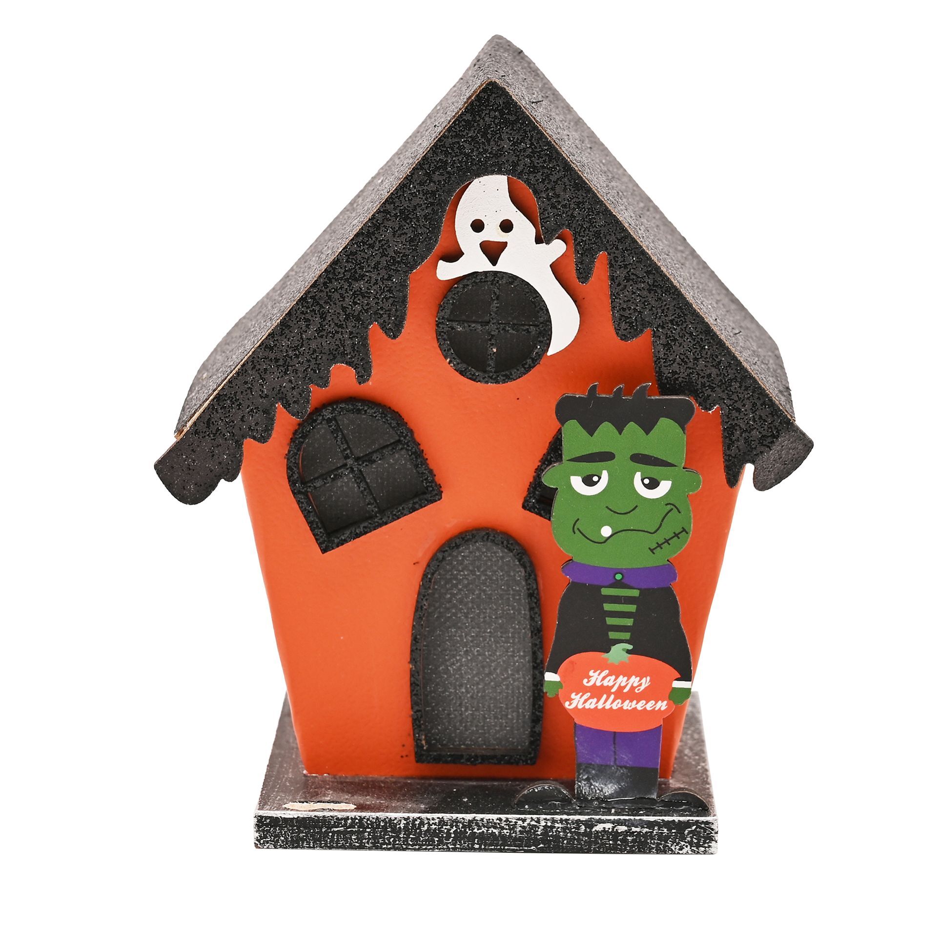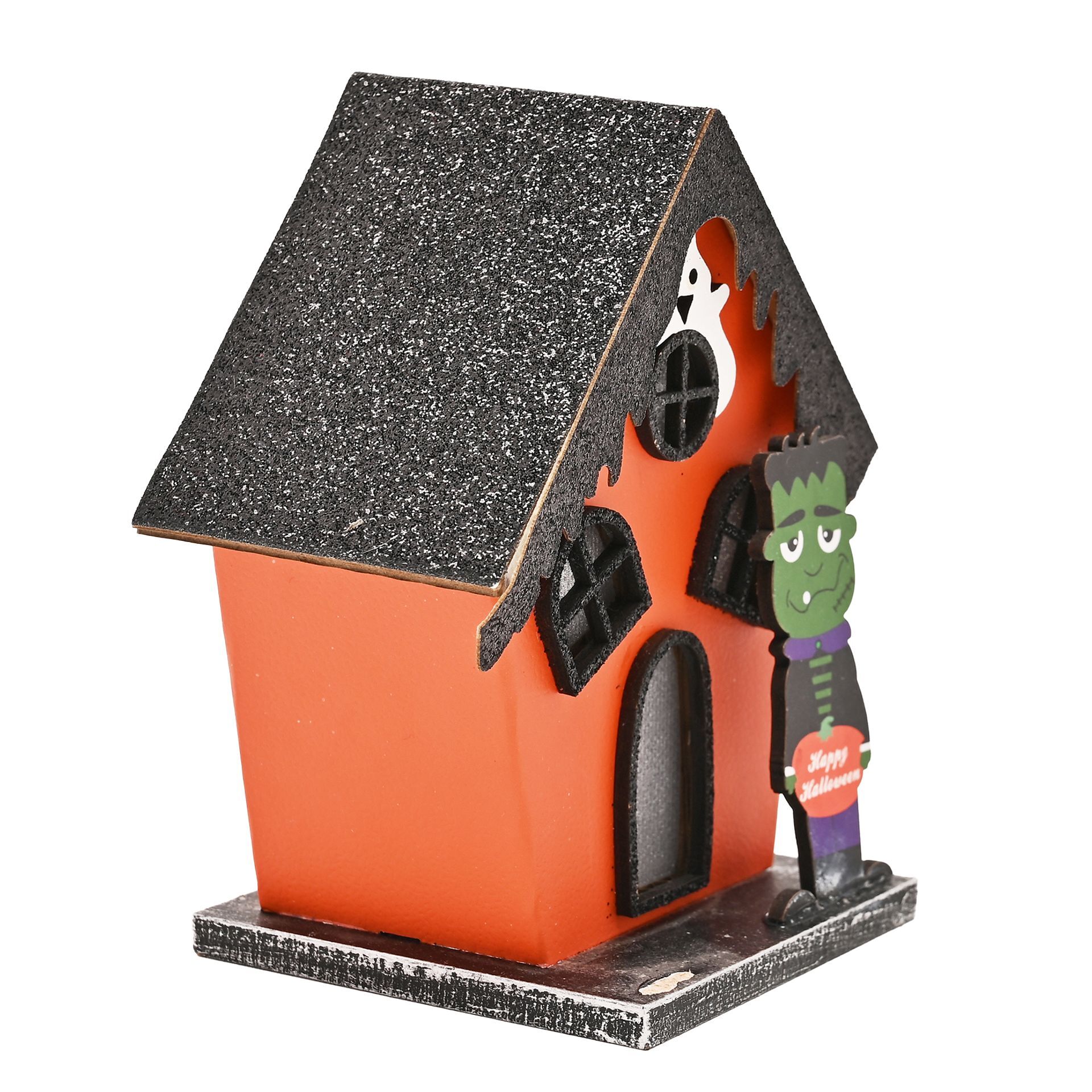 Introduce a subtle sense of Halloween magic with this paper haunted house, complete with LED light and a convenient try-me button. Crafted with thoughtful details, it features a floating ghost and a playful monster, adding a charming touch of spookiness to any display.