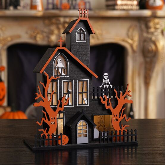 Celebrate the spirit of Halloween with this paper haunted house with led light (includes try me button), styled to capture the essence of the season. Its detailed finish and seasonal styling create a balanced blend of charm and subtle spookiness. A versatile decorative item suited to a wide range of Halloween-inspired settings.