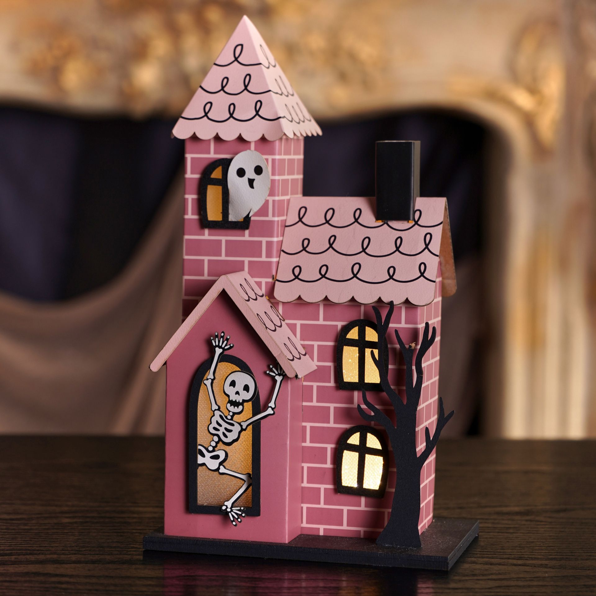 This pink paper house with LED light and skeleton detail (complete with a try-me button) blends playful character with seasonal charm. Its soft pink colourway offers a fresh and uplifting twist on traditional Halloween styling, making it a standout seasonal highlight.
