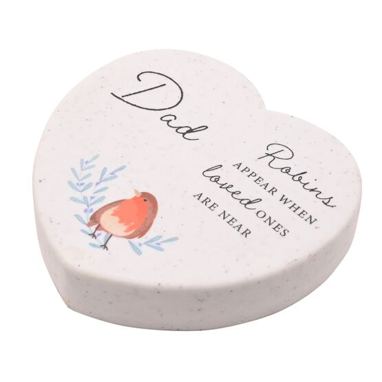 Thoughts Of You Robin Resin Stone Heart Plaque - Dad