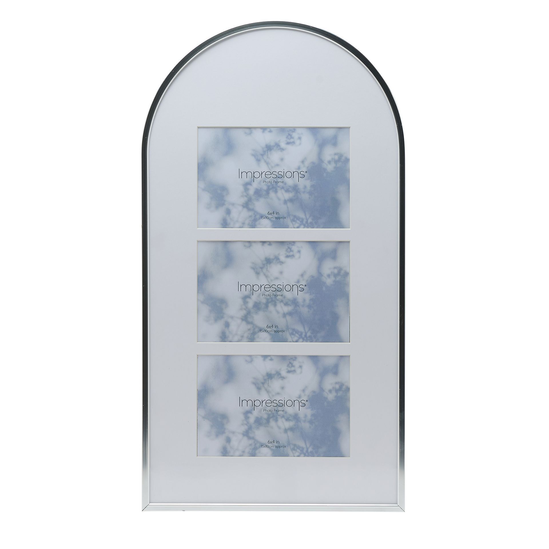 Let people transform their memories into a stunning display with the Impressions® Arched Top Silver Collage Frame. This elegant collage frame, designed to hold three photos each measuring 6x4 inches, is a perfect way for customers to showcase cherished moments.