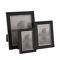 The black, aluminium frame features an inset silver border around its portrait aperture. The strutted frame is one of three sizes available in this modern design.