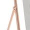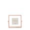 The narrow edge, copper finish metal frame features a small, square ‘floating’ aperture. It is attached to an adjustable hinged strut for versatile display around the home.