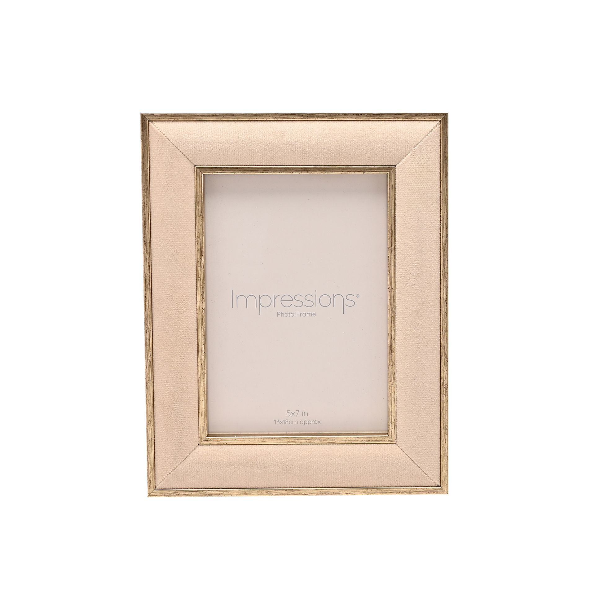 The Impressions Velvet Photo Frame 5" x 7" is an elegant choice for displaying cherished memories. With its soft velvet border in light pink and sophisticated gold trim, this frame adds luxury to any setting.