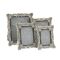The resin frame showcases a silver metallic effect finish, antique floral design and crystal details, complete with luxury black velveteen standing strut. It is designed for portrait or landscape display.