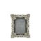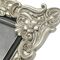 The resin frame showcases a silver metallic effect finish, antique floral design and crystal details, complete with luxury black velveteen standing strut. It is designed for portrait or landscape display.