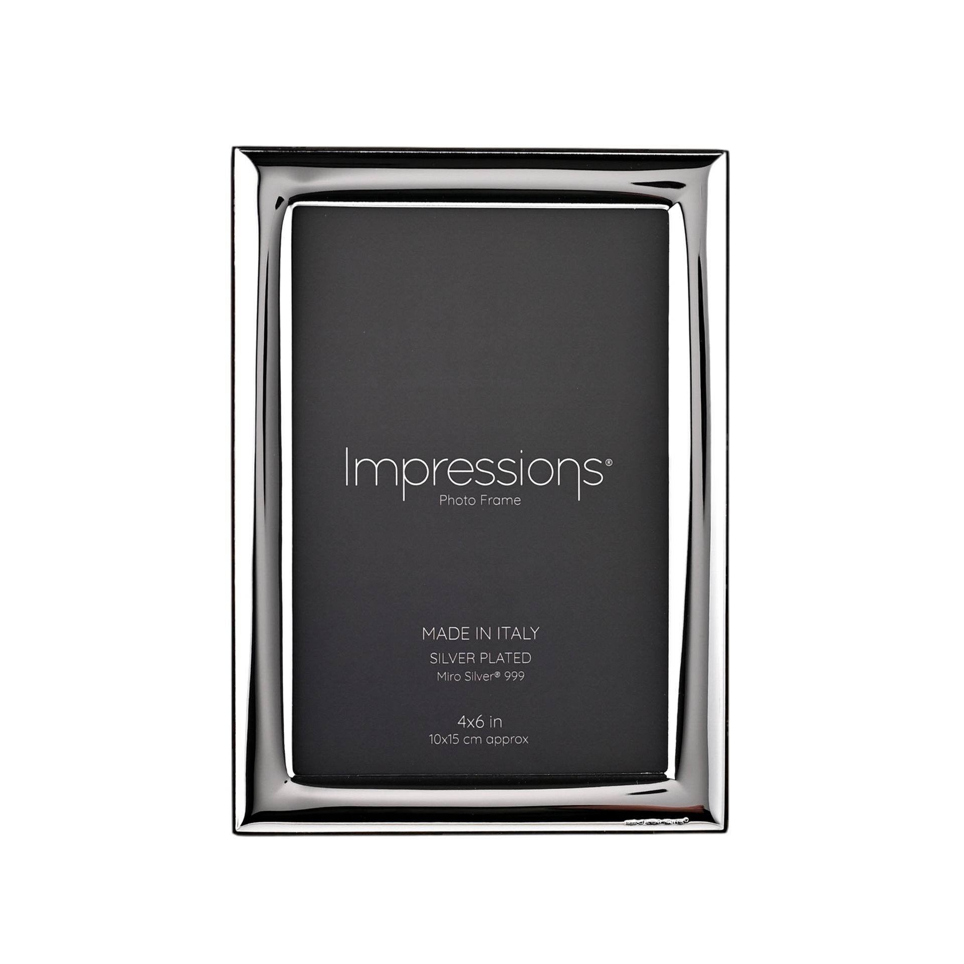 Impressions 999 Silver Narrow Smooth Photo Frame 4" x 6" Wood Back Made In Italy
