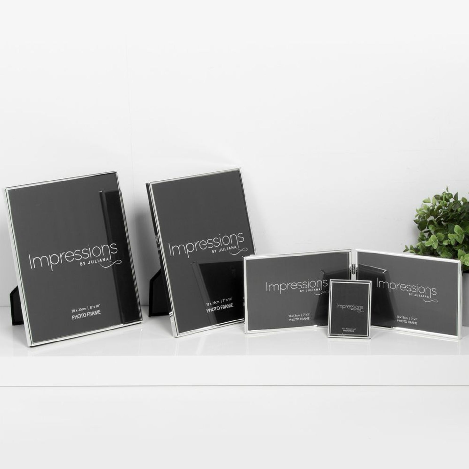 A beautifully simple square silver plated photo frame from IMPRESSIONS® by Juliana. Complete with standing strut.