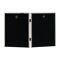 The silver metal frame features a smooth border, portrait apertures and luxury black velveteen backing. The double frame is attached with a pair of hinges and designed for freestanding display.