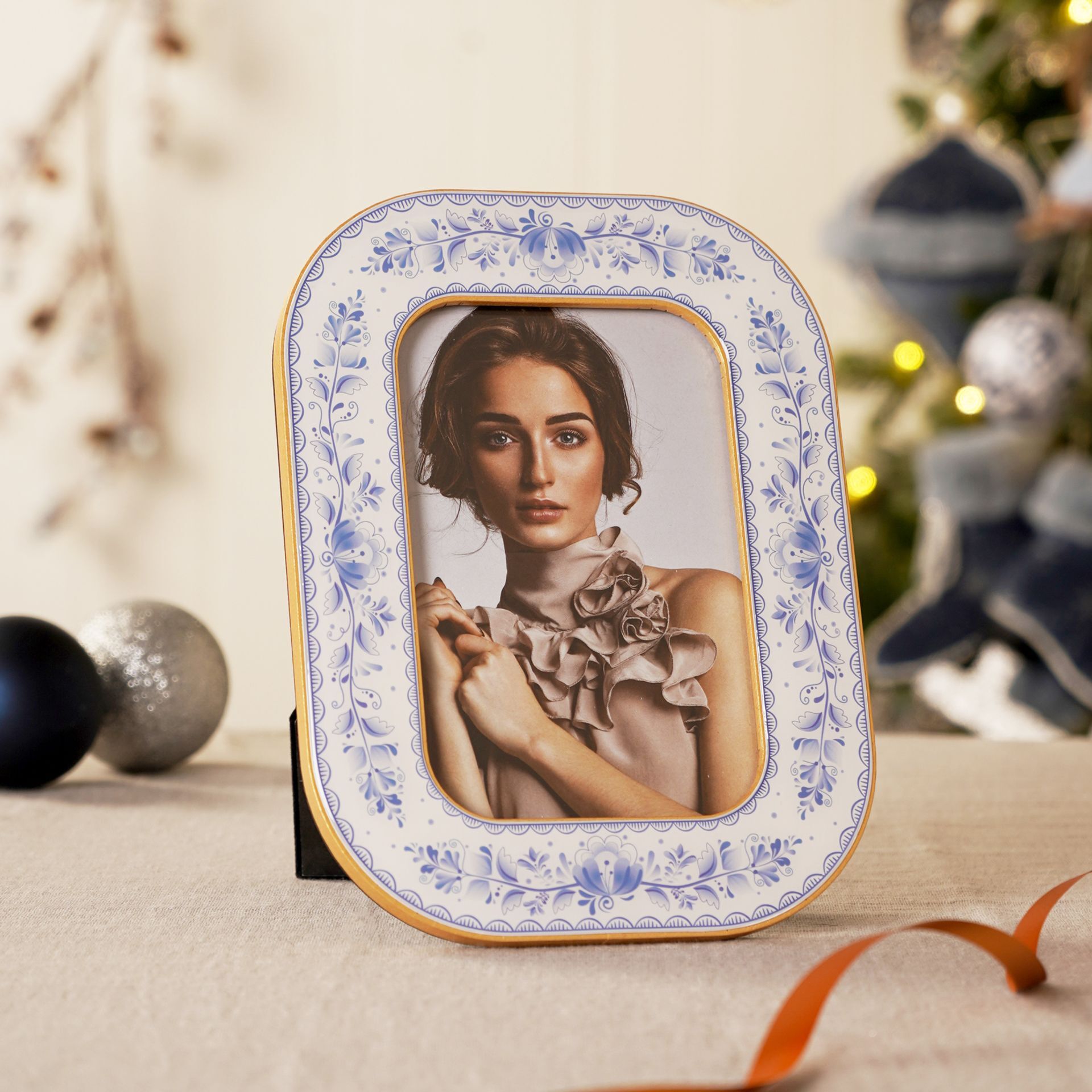 Featuring a floral border inspired by traditional chinoiserie, it frames favourite memories with quiet sophistication. Ideal for mantelpieces, consoles, or gifting edits, this piece complements both festive and year-round interiors.