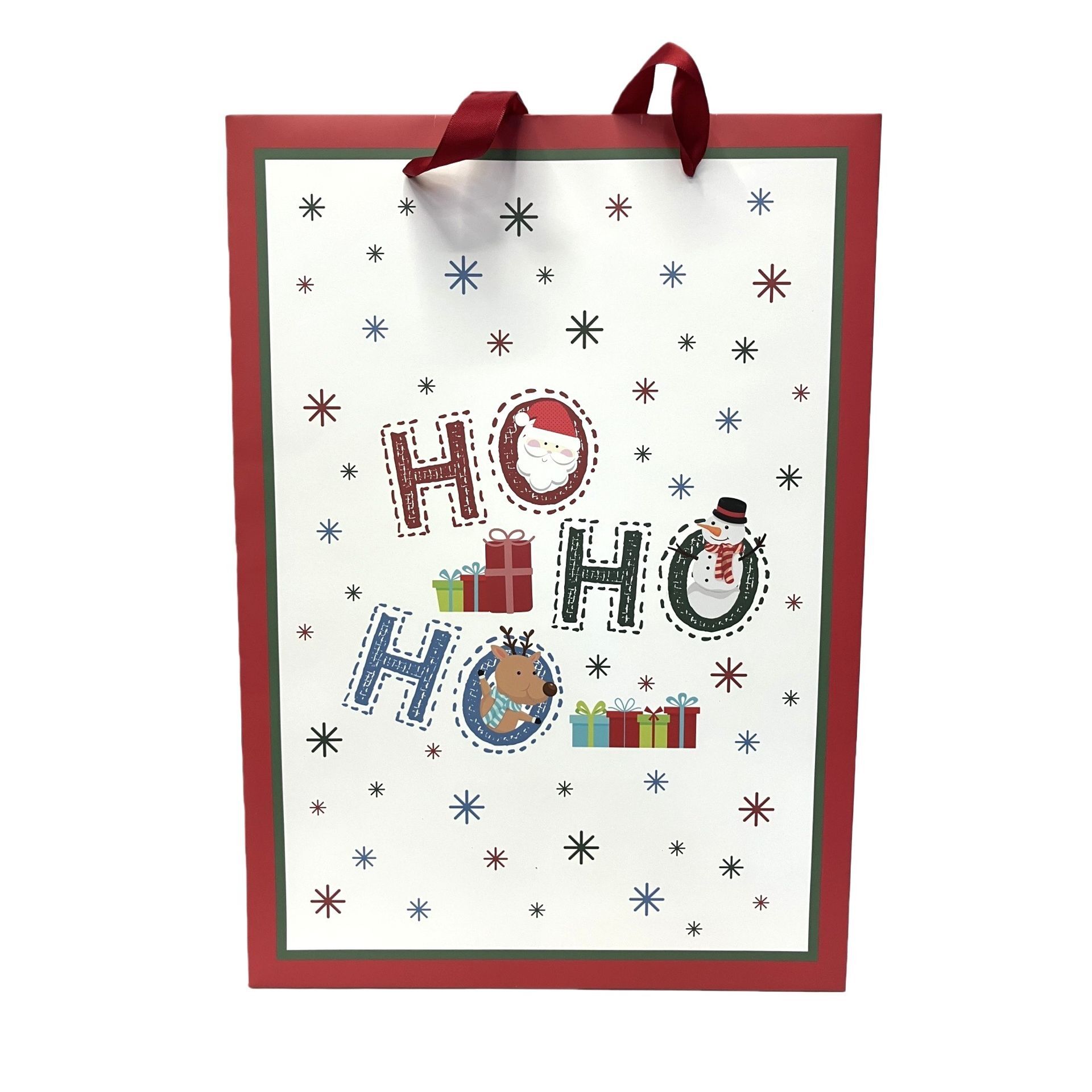 **MULTI 12** Ho Ho Ho Santa and Friends Paper Bag with Rope Handle and Gold Foil - 42x30x12cm