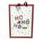 A red and white gift bag with the text "Ho Ho Ho" and various holiday-themed decorations printed on it.