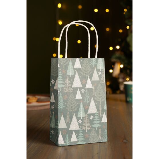 **MULTI 12** Set of 4 Christmas Forest Hot-Stamped Paper Bag 21.5 x 13 x 8cm