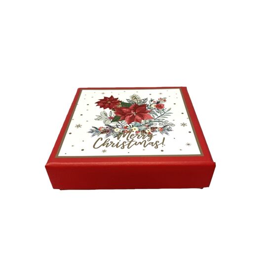 **MULTI 6** Merry Christmas Red Poinsettia Paper Box with Hot Foil Lid - 10x10x2.5cm
