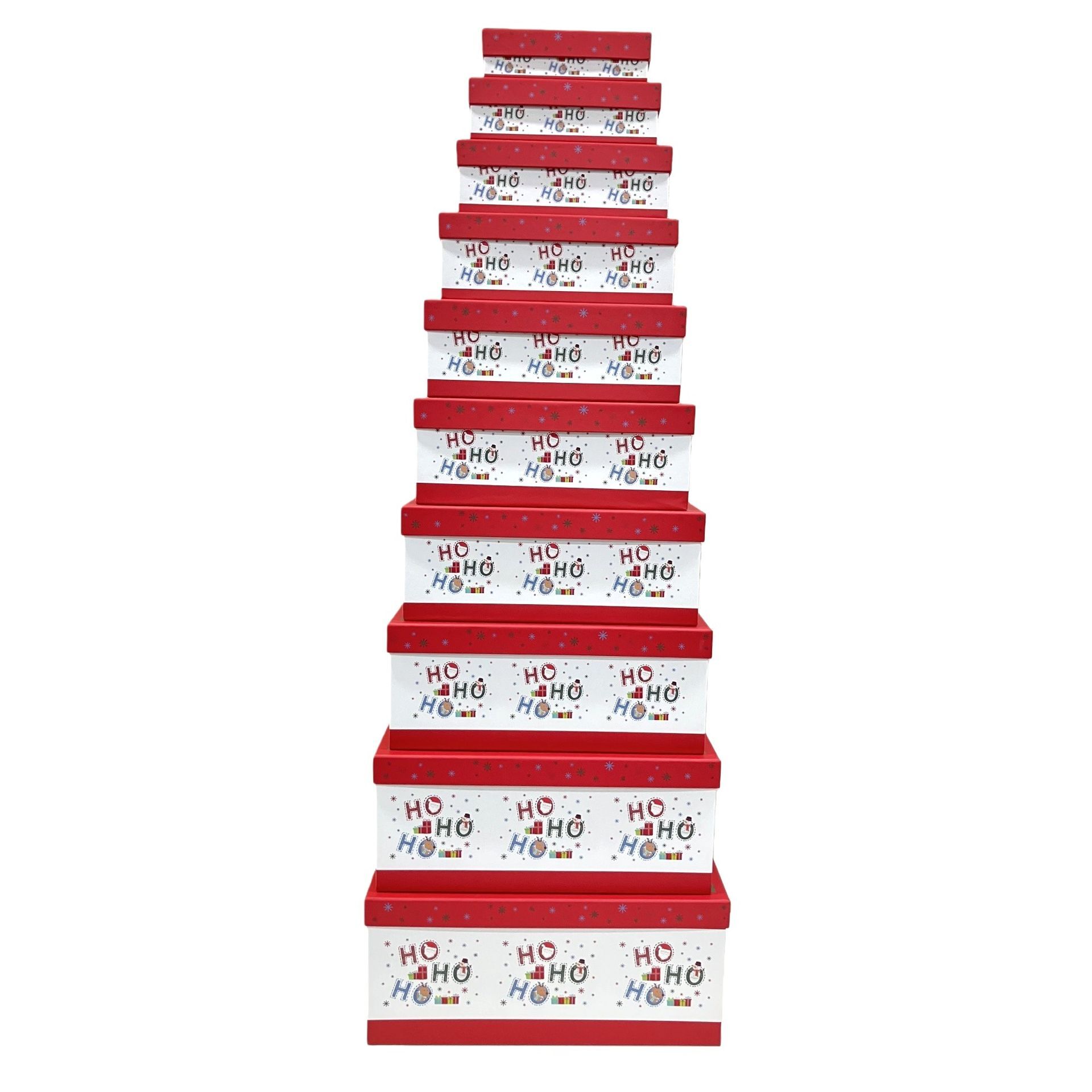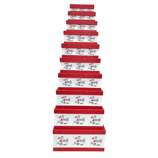 Set of 10 Ho Ho Ho Santa and Friends Paper Boxes with Hot Foil Lid - Largest Size 40x29x18cm