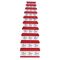 A stack of red and white rectangular boxes, each labelled with the word "HO", arranged in a pyramidal shape.