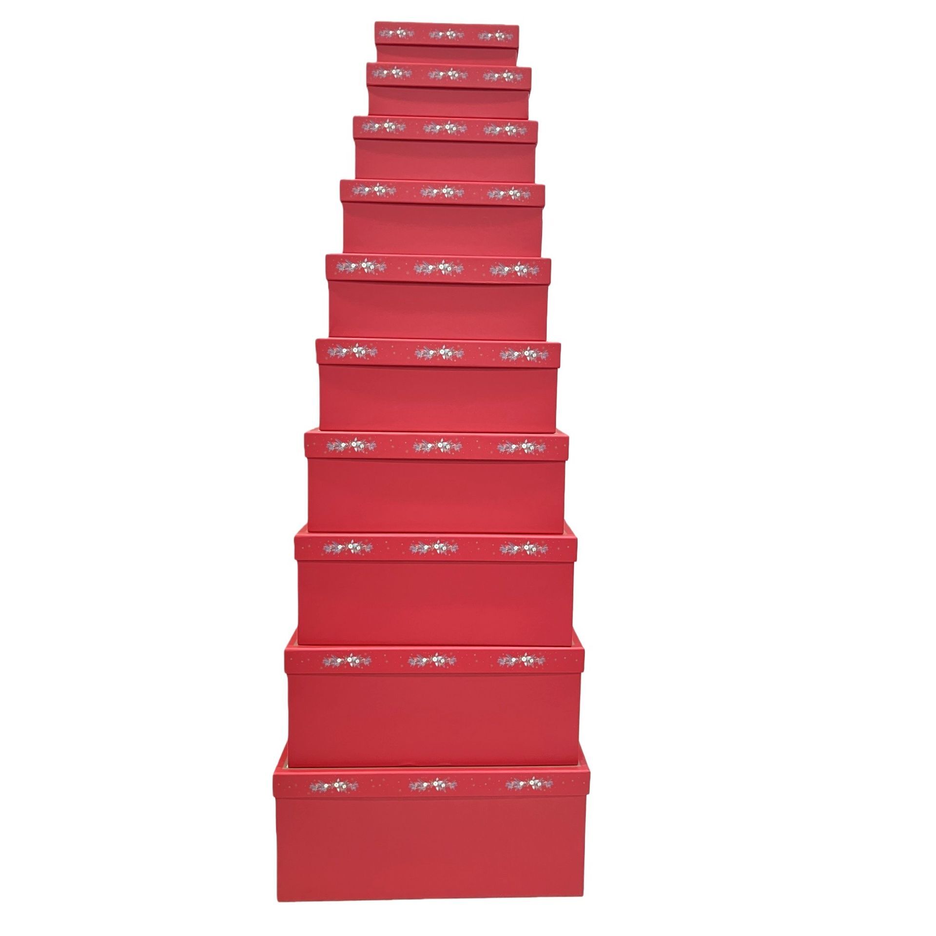 Set of 10 Merry Christmas Red Poinsettia Paper Boxes with Hot Foil Lid - Largest Size:40x29x18cm