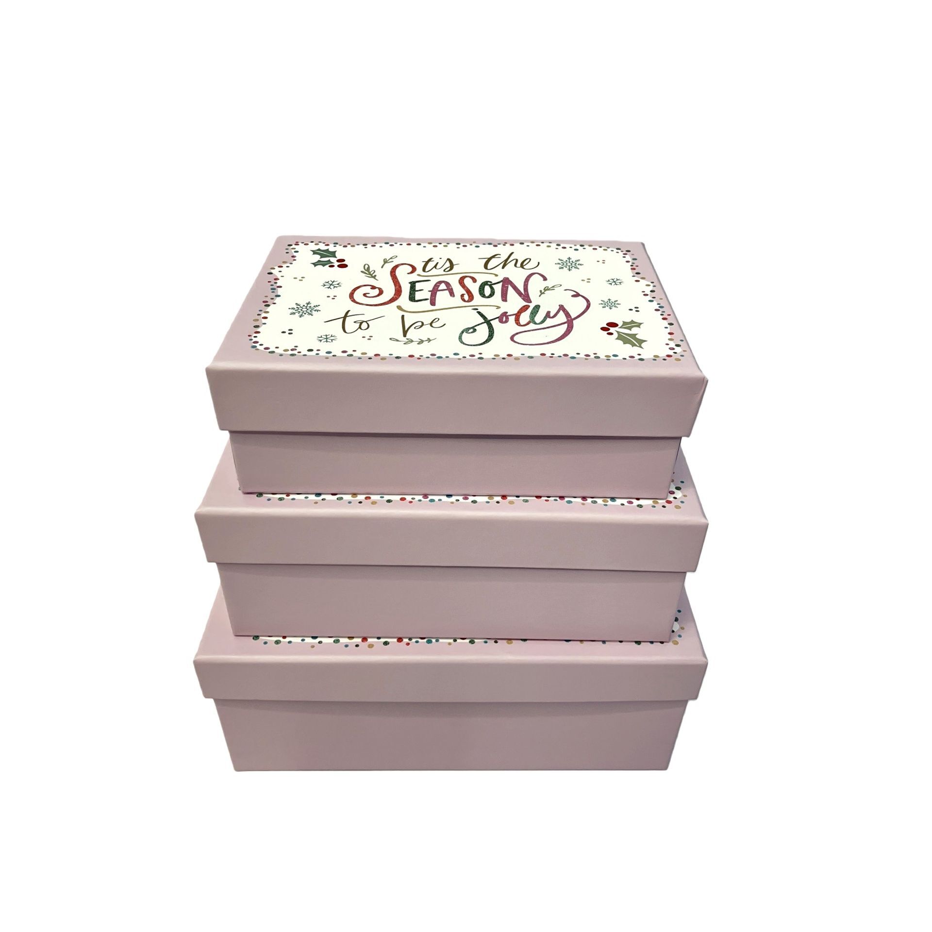Set of 3 Tis The Season Paper Boxes with Hot Foil Lid - Largest Size:16x22x9cm
