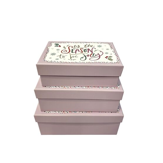 Set of 3 "Tis The Season" gift Boxes with hot foil lid offer a festive storage solution for gifting and décor.