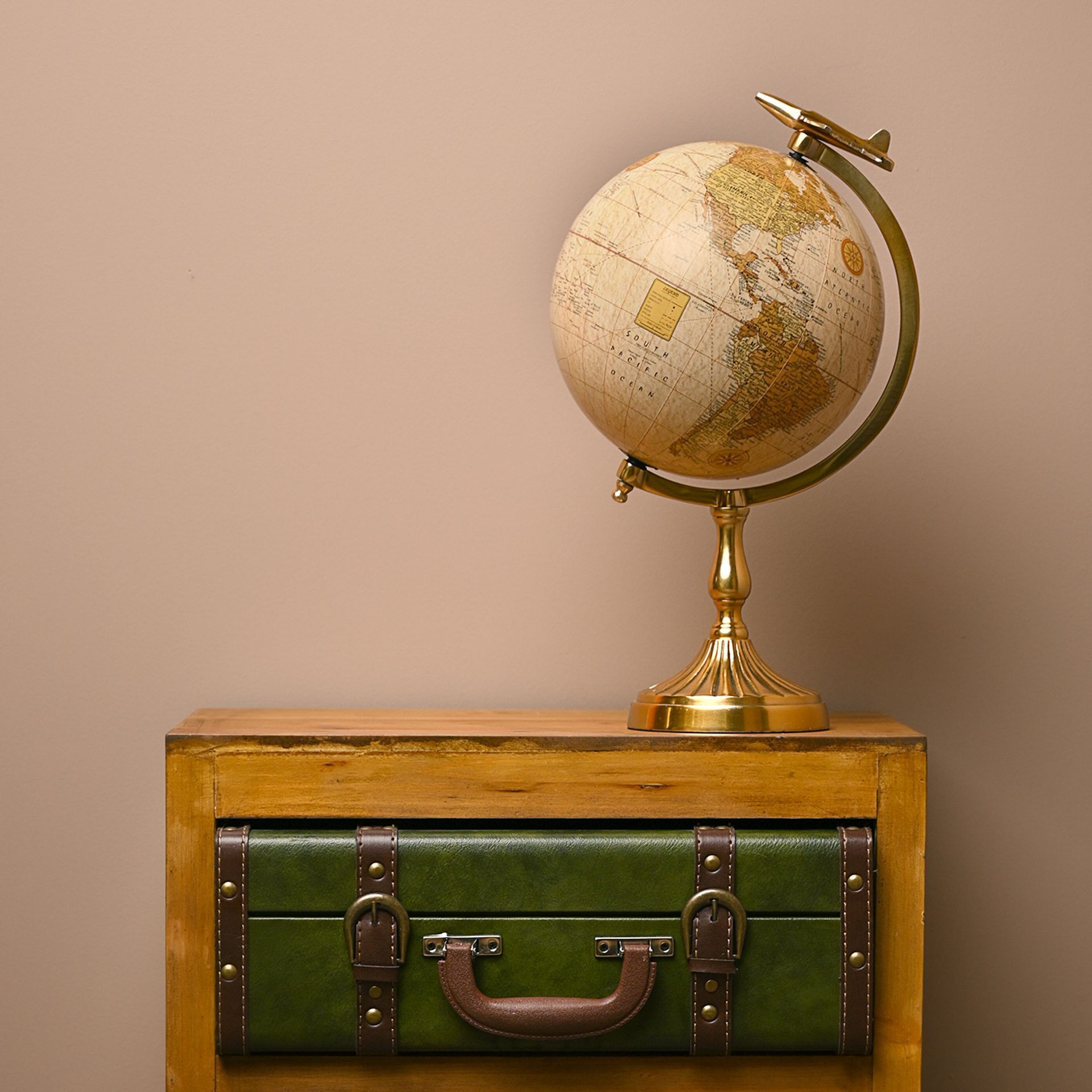 Gold-based globe with aeroplane detail from HARVEY MAKIN®.