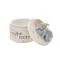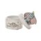 A set of 3D tooth and curl Dumbo pots from DISNEY®. This set of hand painted, moulded Dumbo tooth and curl boxes from Magical Beginnings create a beloved keepsake with an extra sprinkling of timeless Disney magic. Both white coloured pots come complete with ‘My first’ sentiments and adorable decoration. Atop the matching lids sit beautifully detailed Dumbo characters in different poses. The pots are packaged in a bespoke pack.