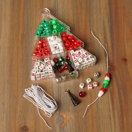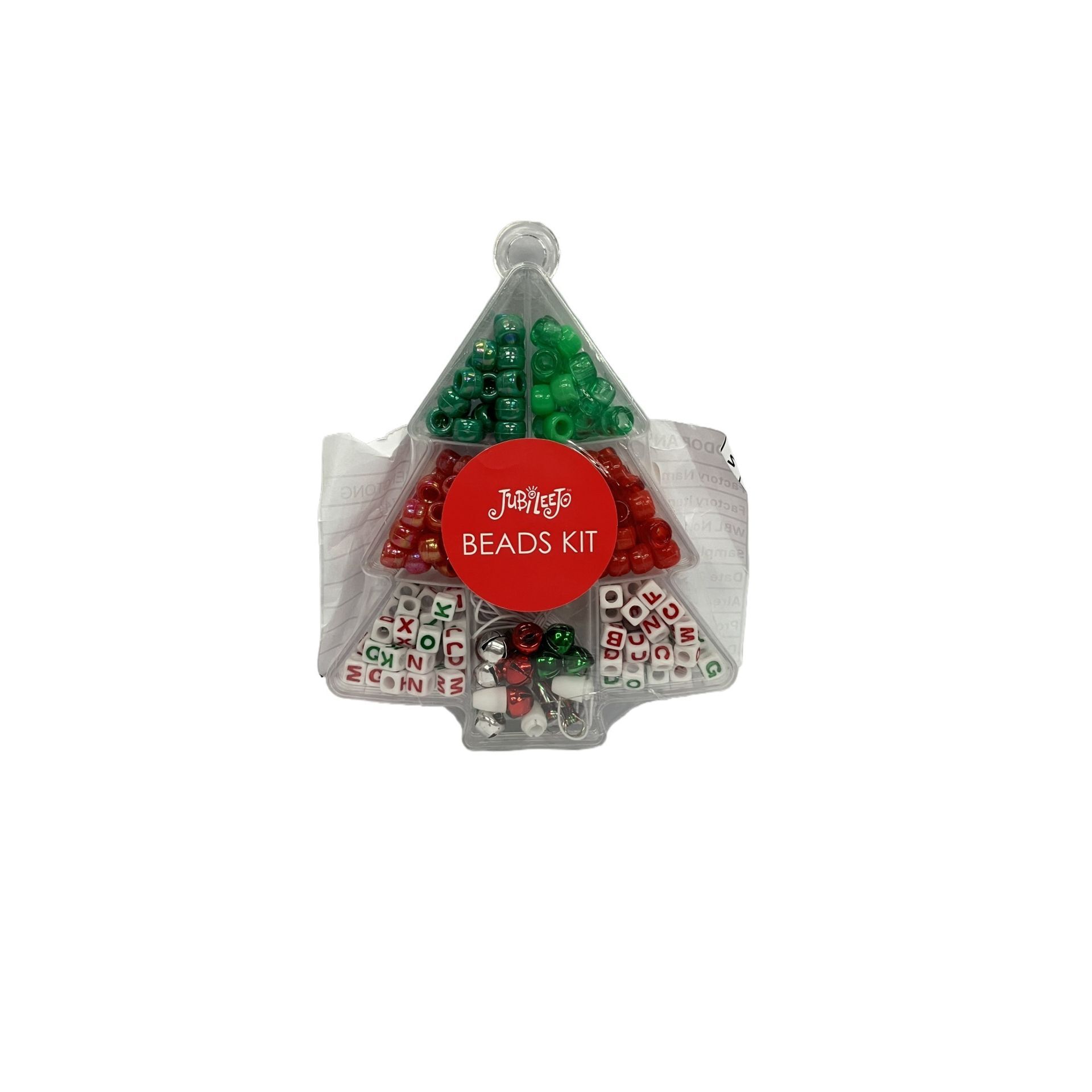 Inside this kit, you'll find a delightful assortment of colorful beads, including vibrant red and green, arranged in a charming Christmas tree shape. Lettered beads add a personalised touch, inviting creativity and fun for all ages.