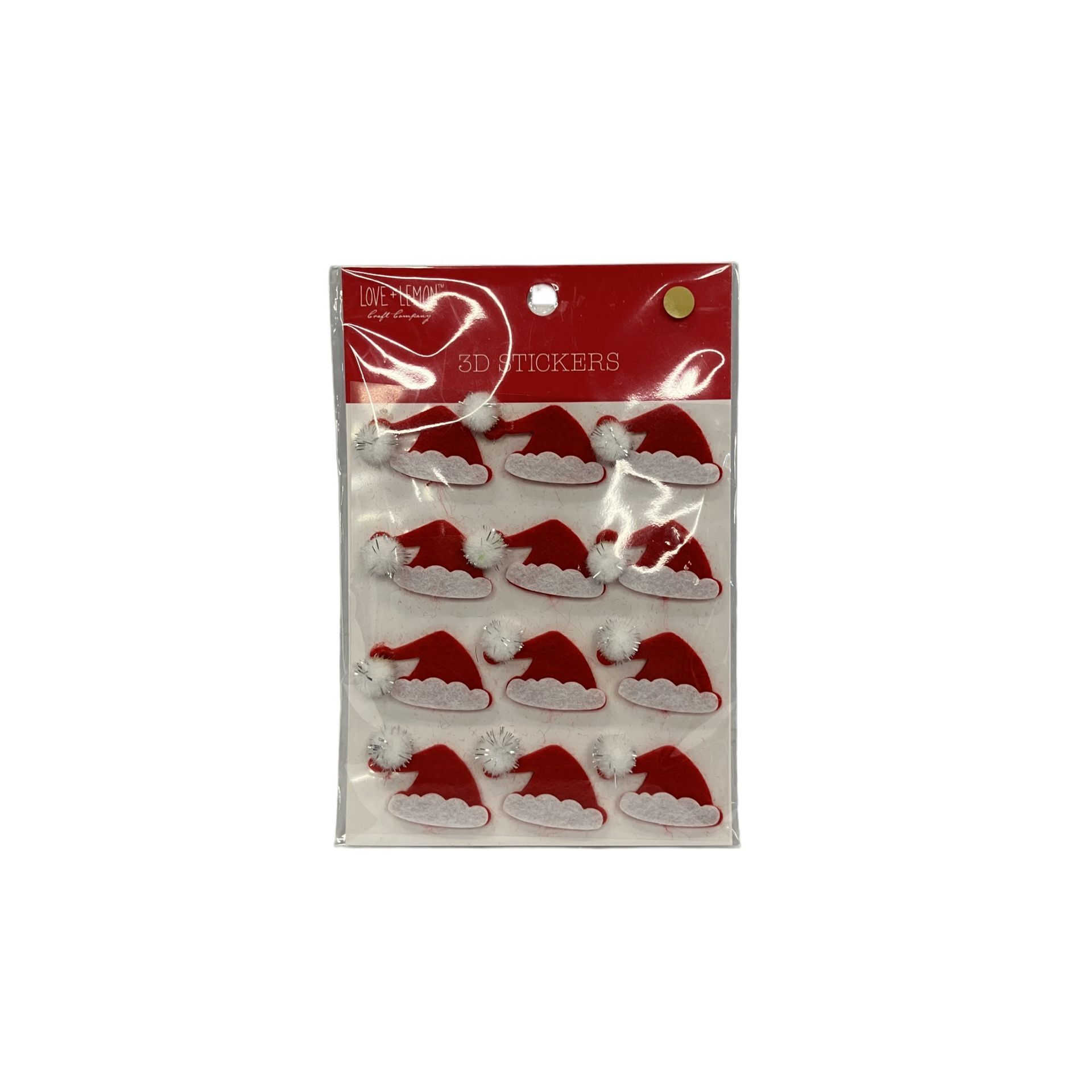 The MULTI 6 12pc Santa Hat 3D Stickers offer a playful twist on classic Christmas motifs for creative decorating.