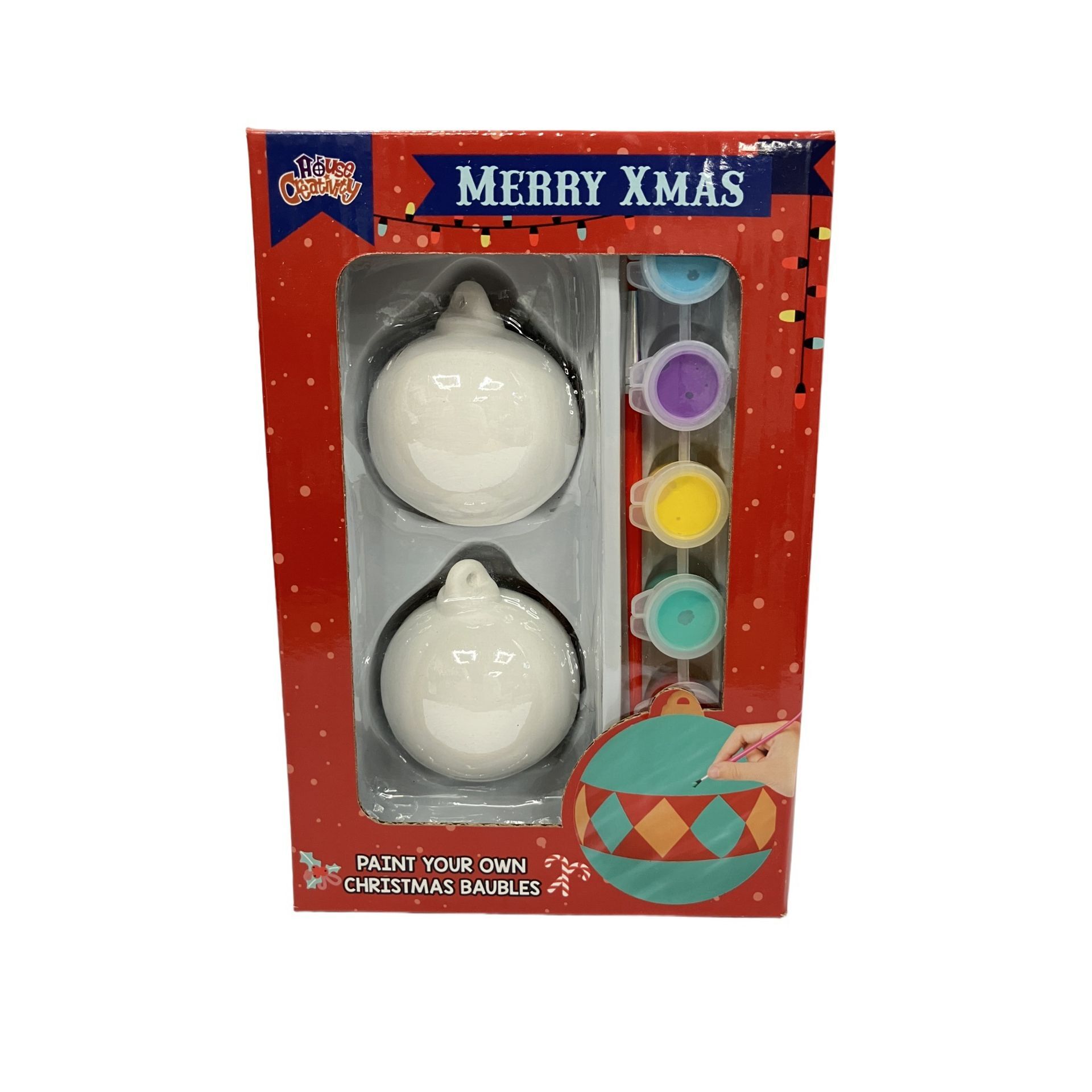 Paint Your Own Christmas Baubles 2 Plaster Baubles, 6 Paint Pots With Paint Brush