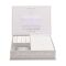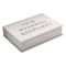 The grey box is made from sturdy cardboard, complete with hinged lid, on which sits an external ‘Our Wedding Keepsakes’ silver title and internal envelope with space to add names of the couple alongside their wedding date. Inside the box sits four individually labelled storage matchboxes, ‘Memories of Our Special Day’ photo album and ‘Wedding Treasures’ drawstring bag.