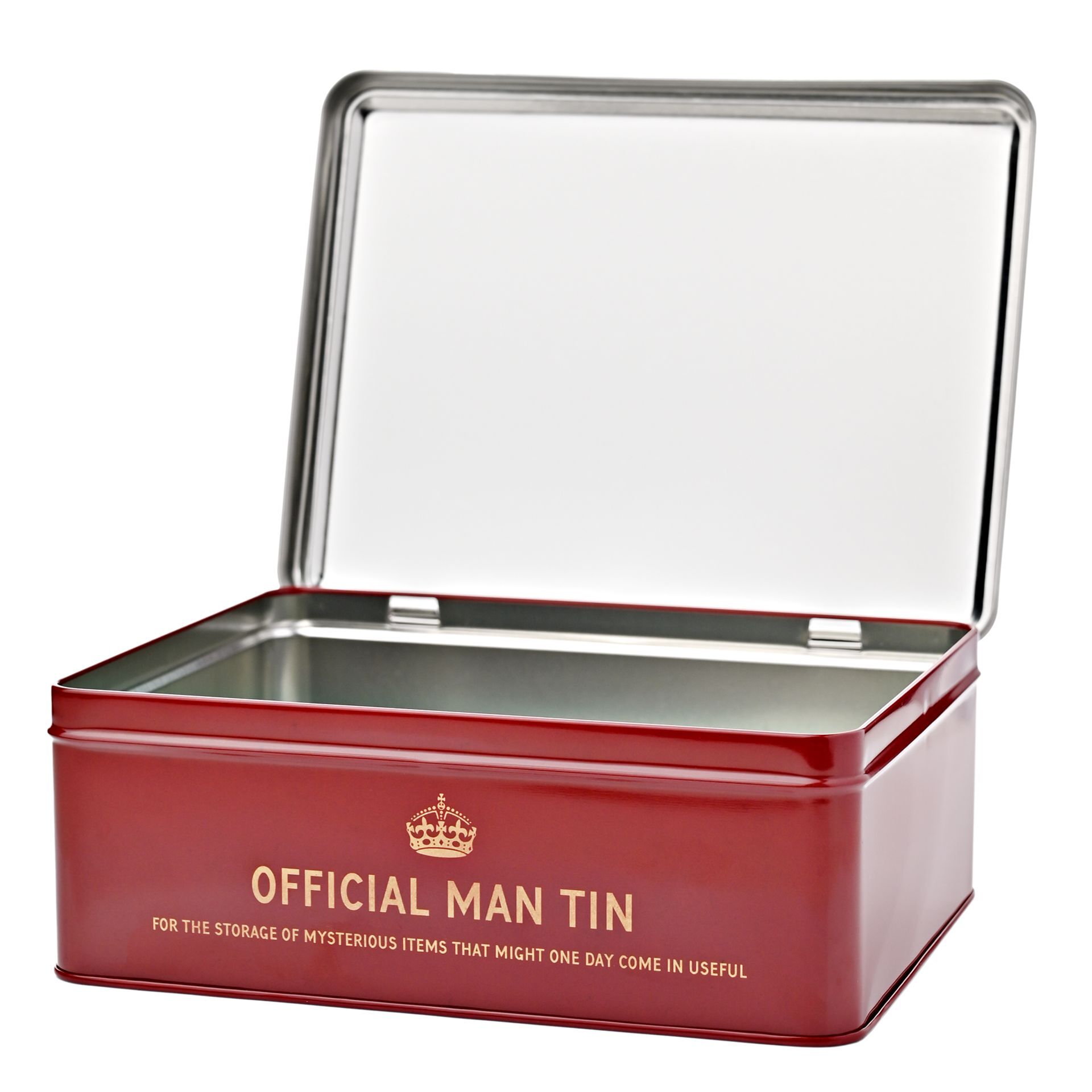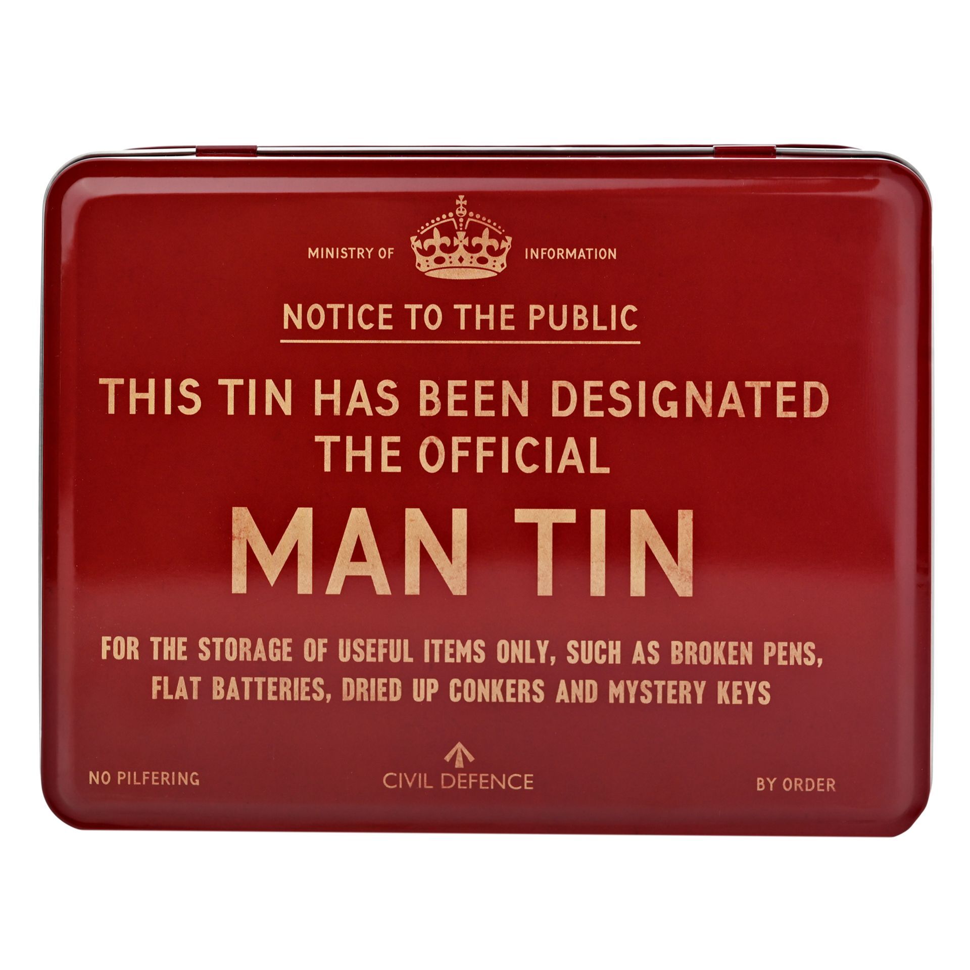 Designed by Jerry Tapscott, the tin includes the comic slogan, ‘FOR THE STORAGE OF USEFUL ITEMS ONLY, SUCH AS BROKEN PENS, FLAT BATTERIES, DRIED UP CONKERS AND MYSTERY KEYS’!