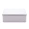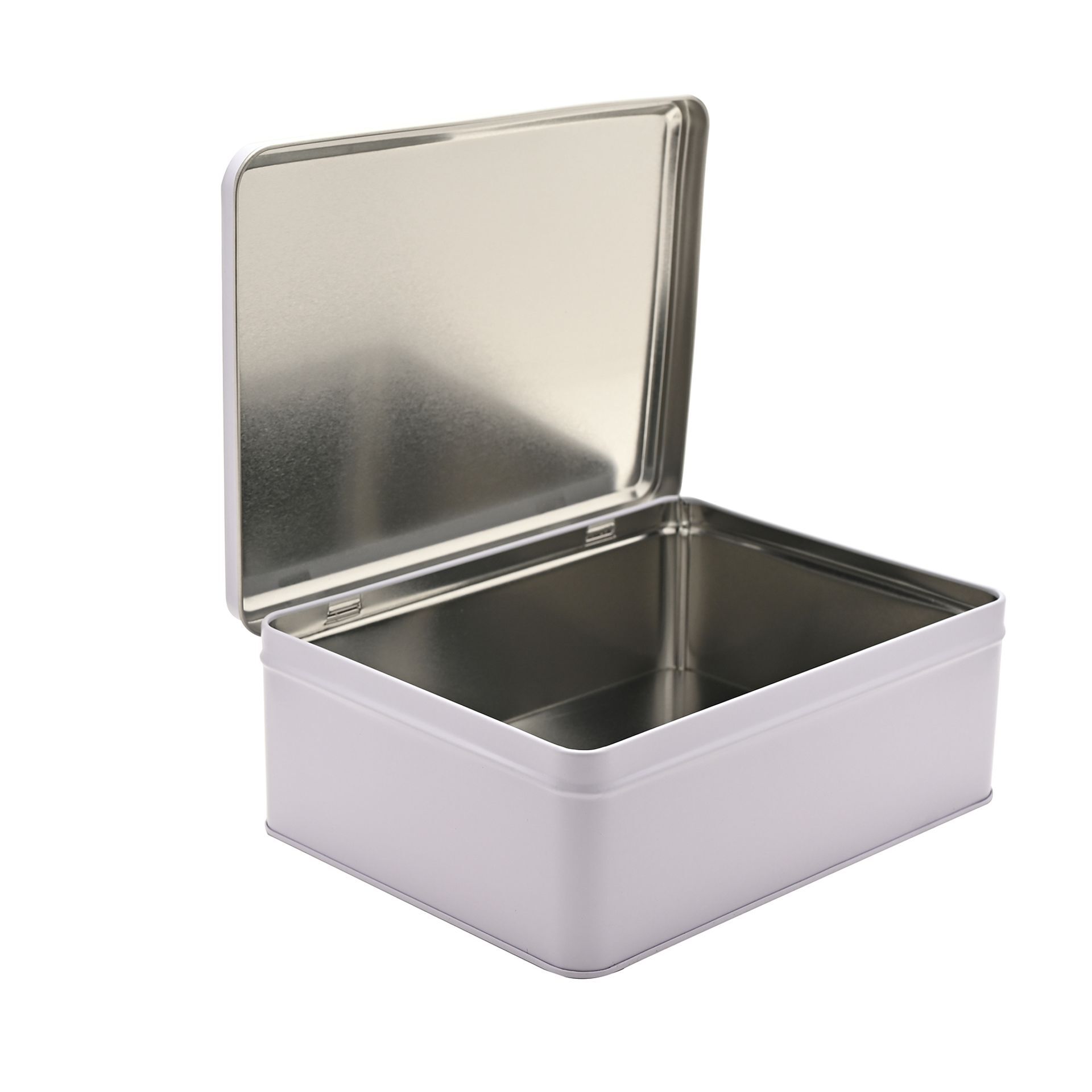 The white tin box showcases a matt finish for personalisation. Its hinged lid opens to reveal ample space in which to store treasured items and mementoes.