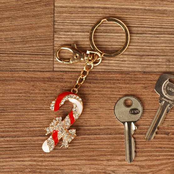 The Collectable Keyring - Candy Cane With Crystals offers a playful twist on festive accessories for the season.