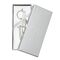 The silver metal plaque features a delicately engraved feather design with metallic effect. It is finished by its white ribbon, hanging ring and plain heart.
