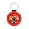 A red circular keychain featuring a group of people in retro-style attire, set against pink and highlighted with glittery gold accents, it captures the joyful spirit of the season. The PU finish offers a smooth, modern texture with a subtle shine.