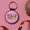 A pink and gold-coloured keychain, it features the cheerful text "HOLLY JOLLY" displayed prominently, crafted in PU leather for a smooth, modern finish. The lively palette and bold lettering evoke the joyful energy of Whimsical colection.